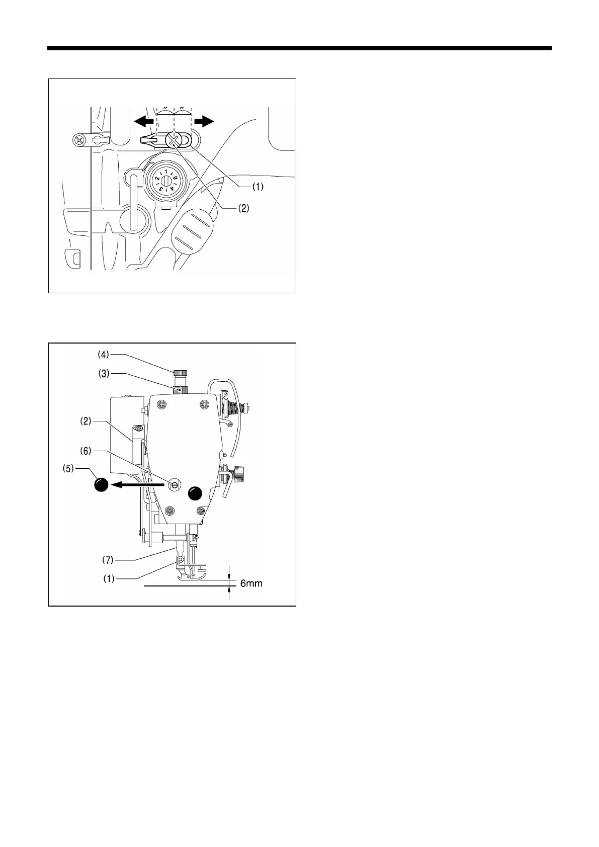 Loosen the bolt (6) and then move the presser bar (7) up