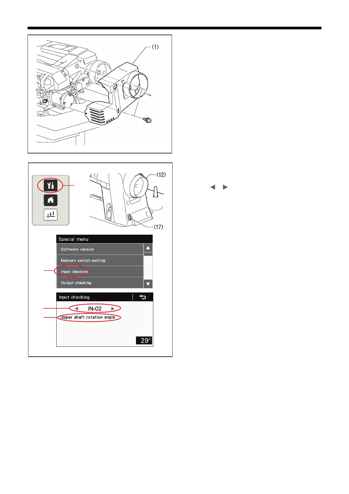7. Touch the or key (19) to select "Upper shaft rotation