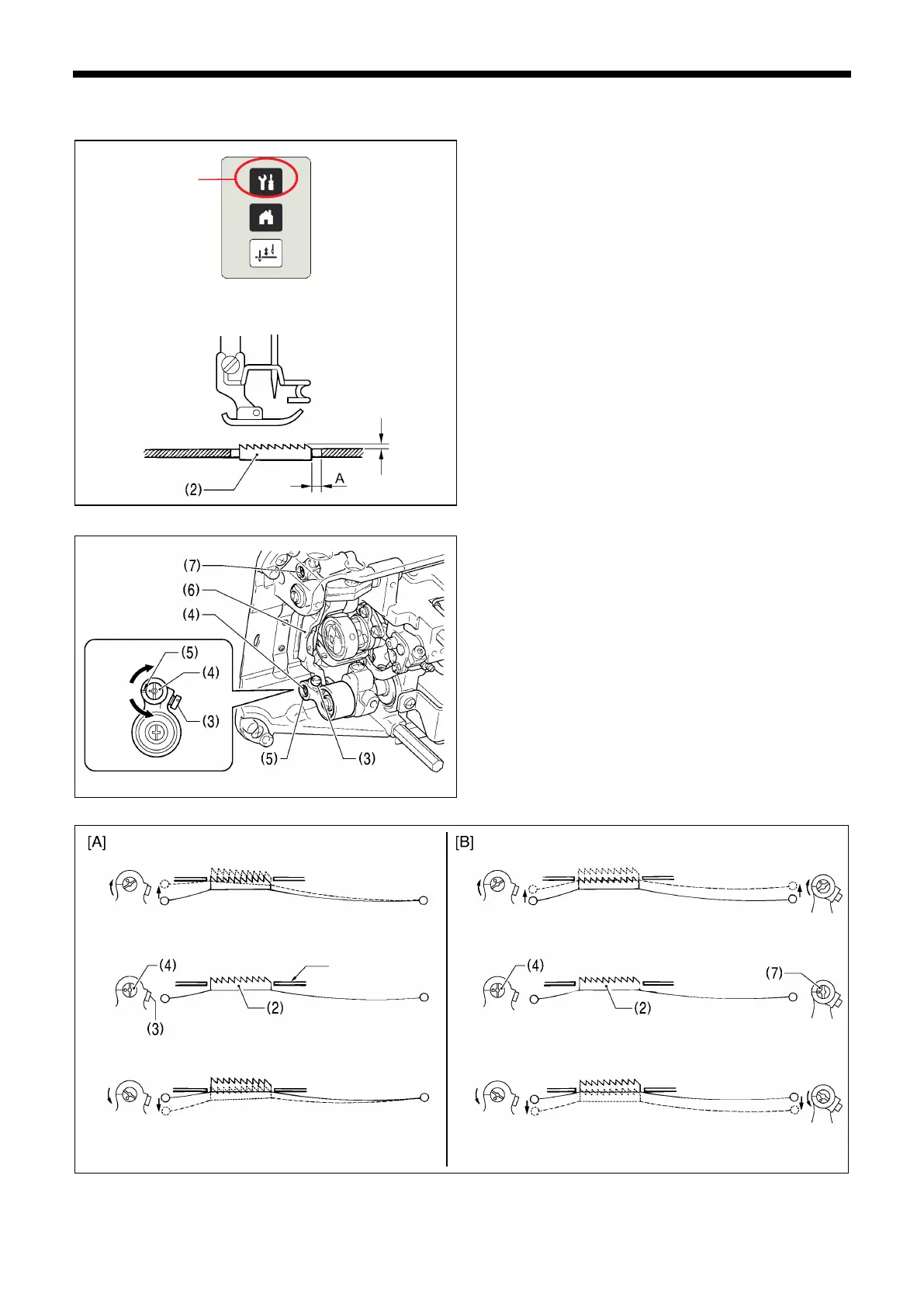 (Fig. (B)) (Refer to "7-5-4-2. Adjusting the feed dog angle"