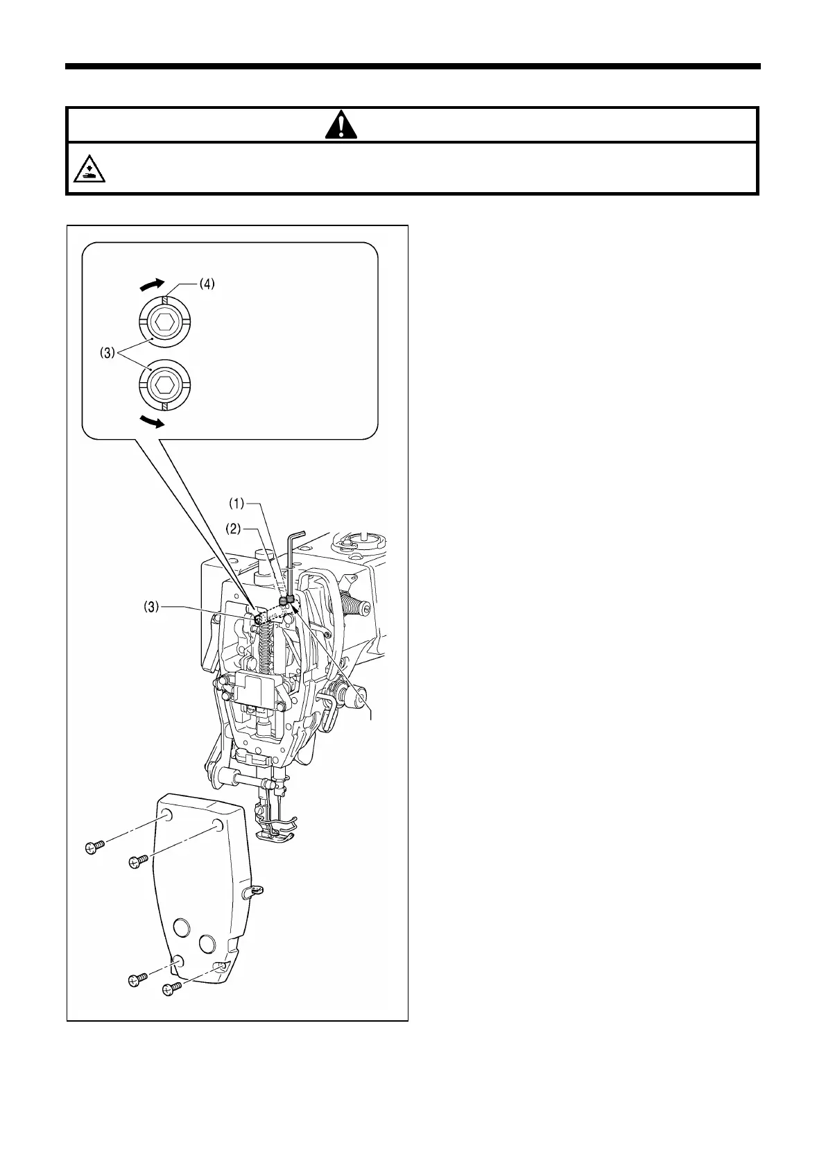 Turn the thread take-up support shaft (3) clockwise