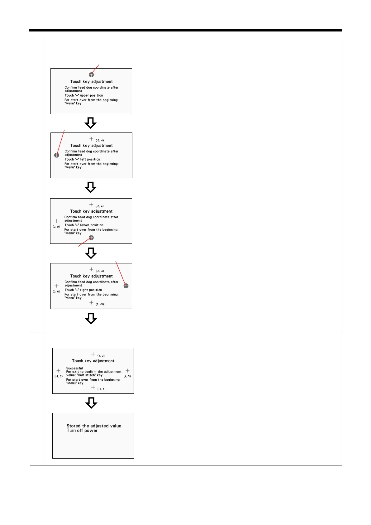 1. To confirm the adjustment values and exit, press the half stitch key.