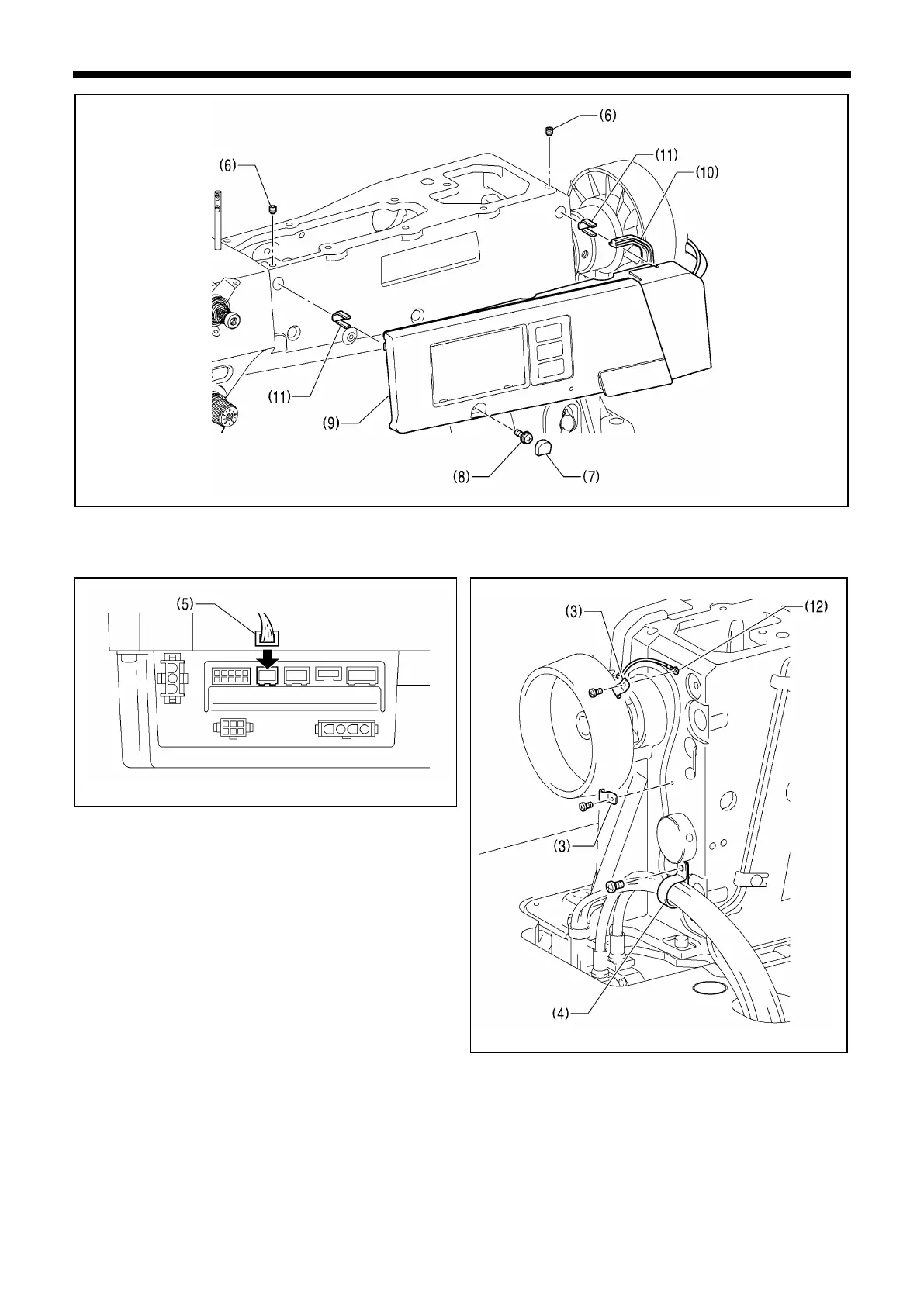 12. Fit the panel (9) to the machine head, secure it with the two set screws (6) and the screw (8), and then install the cap (7).