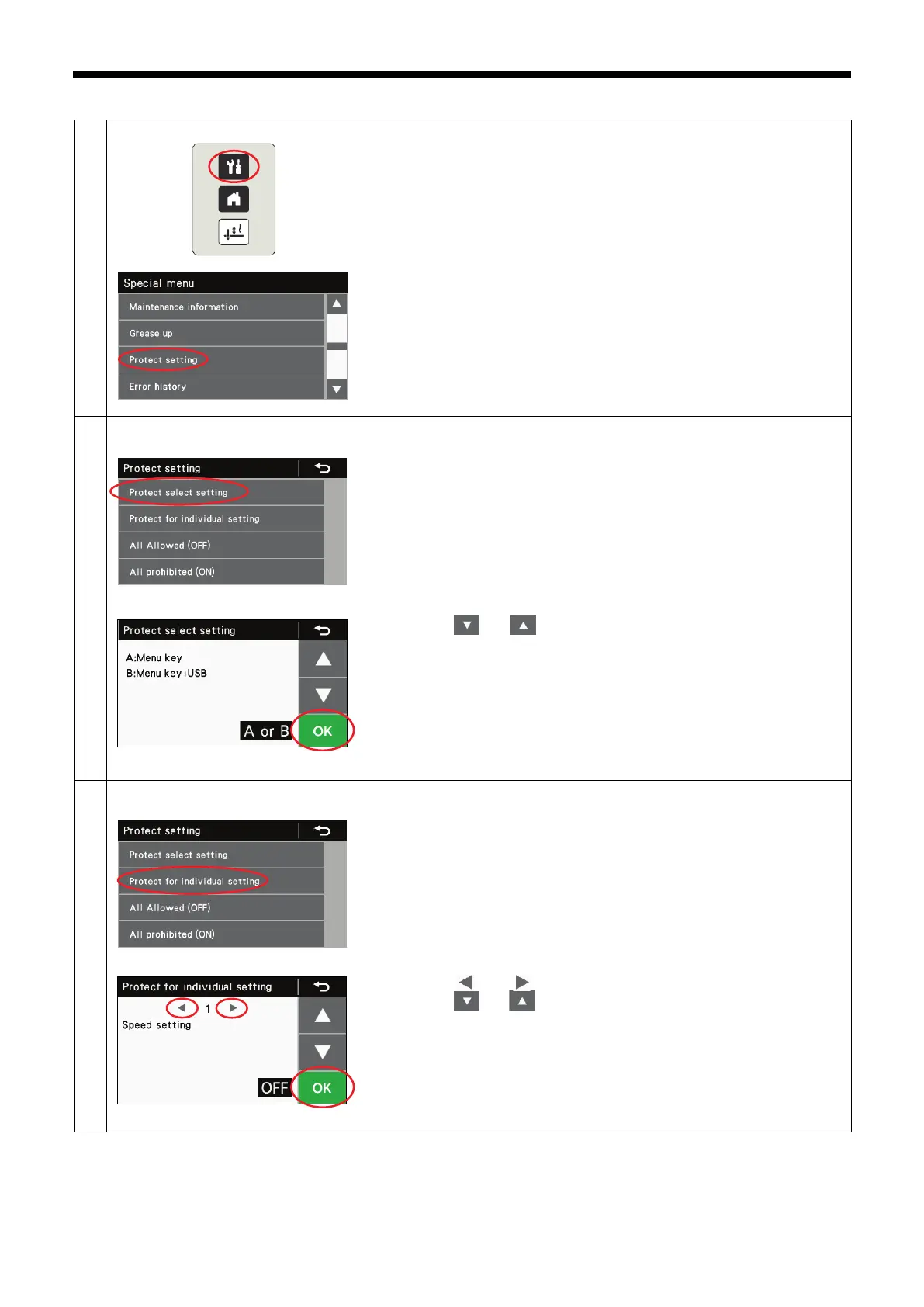 1. At the protect setting screen, select "Protect select setting".