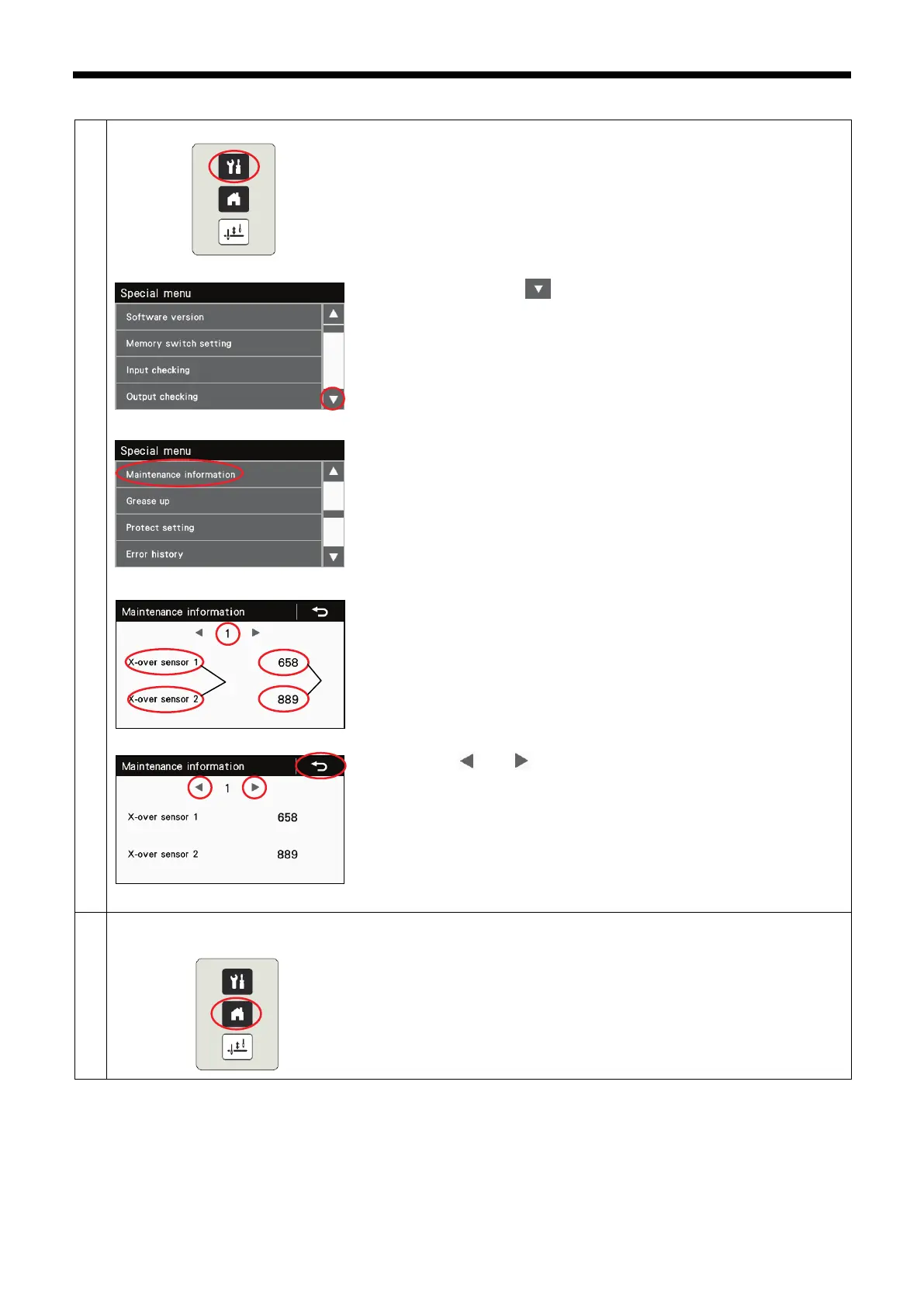5. Press the[ ] or [ ] key (4) to select the screen (1 to 4) that you