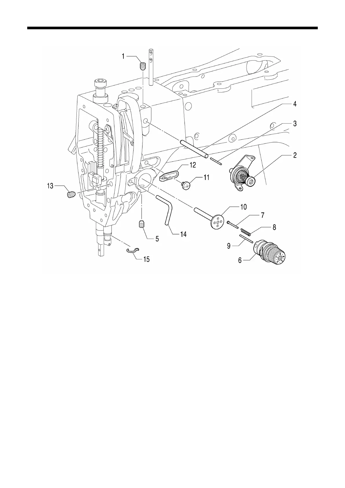 15. Needle bar bush D thread guide