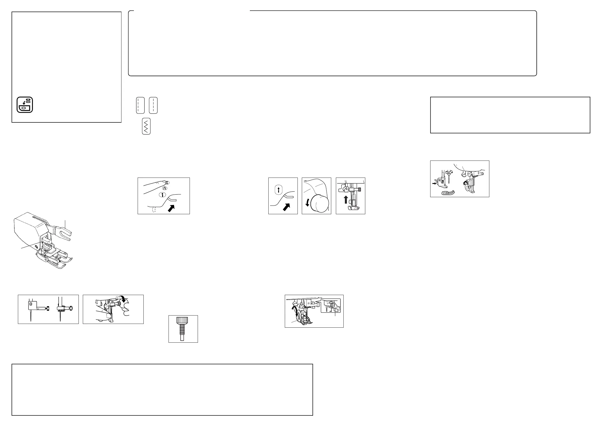 • Cuando esté utilizando el prensatela acompañante, cosa a una velocidad entre lenta y media para evitar dañar el equipo o heridas personales.