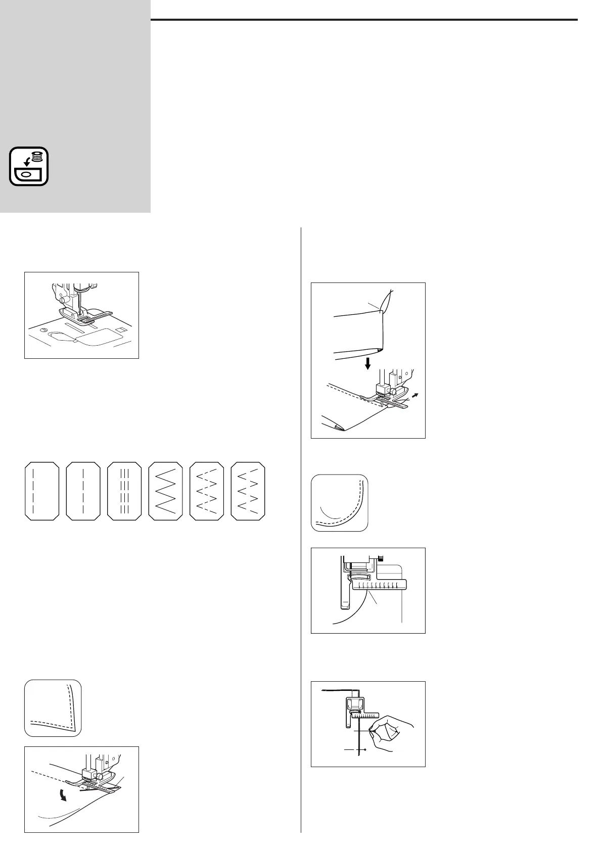 Rechte steken, zigzagsteken en andere decoratieve patronen.