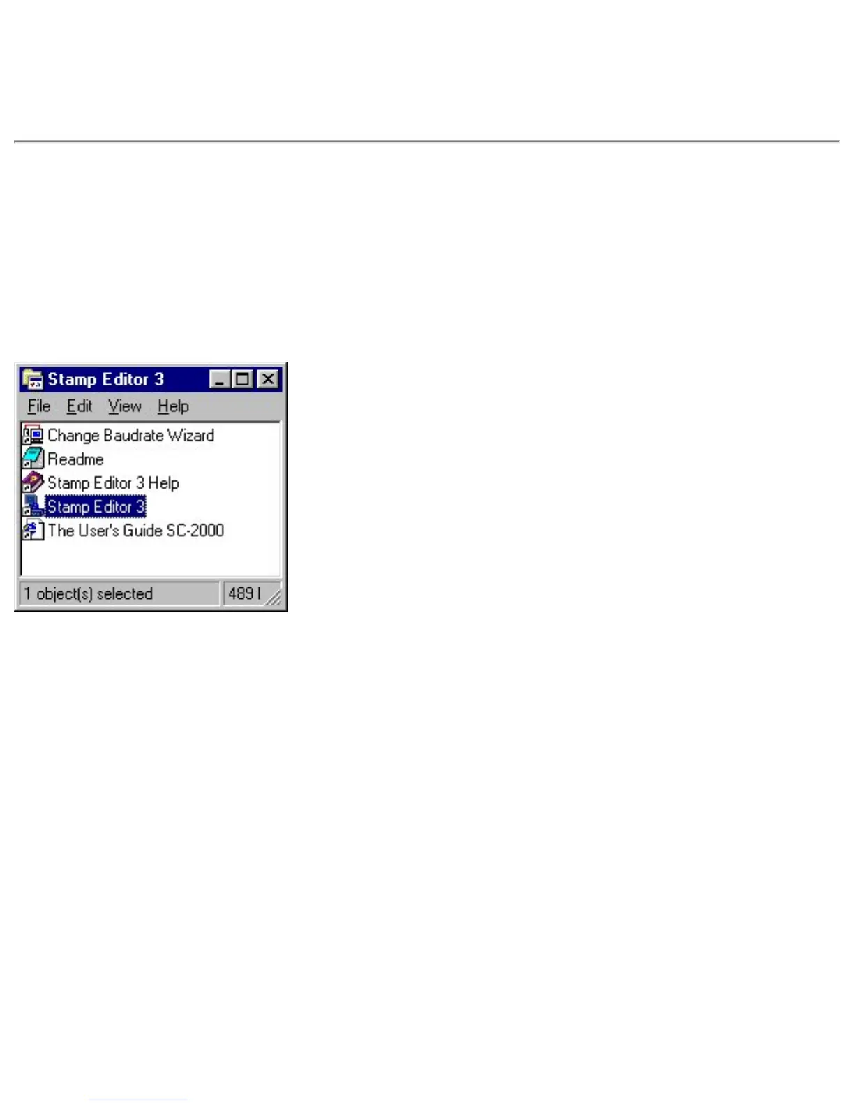 You can start up Stamp Editor by clicking its icon in the "Stamp Editor 3" group window or by using the