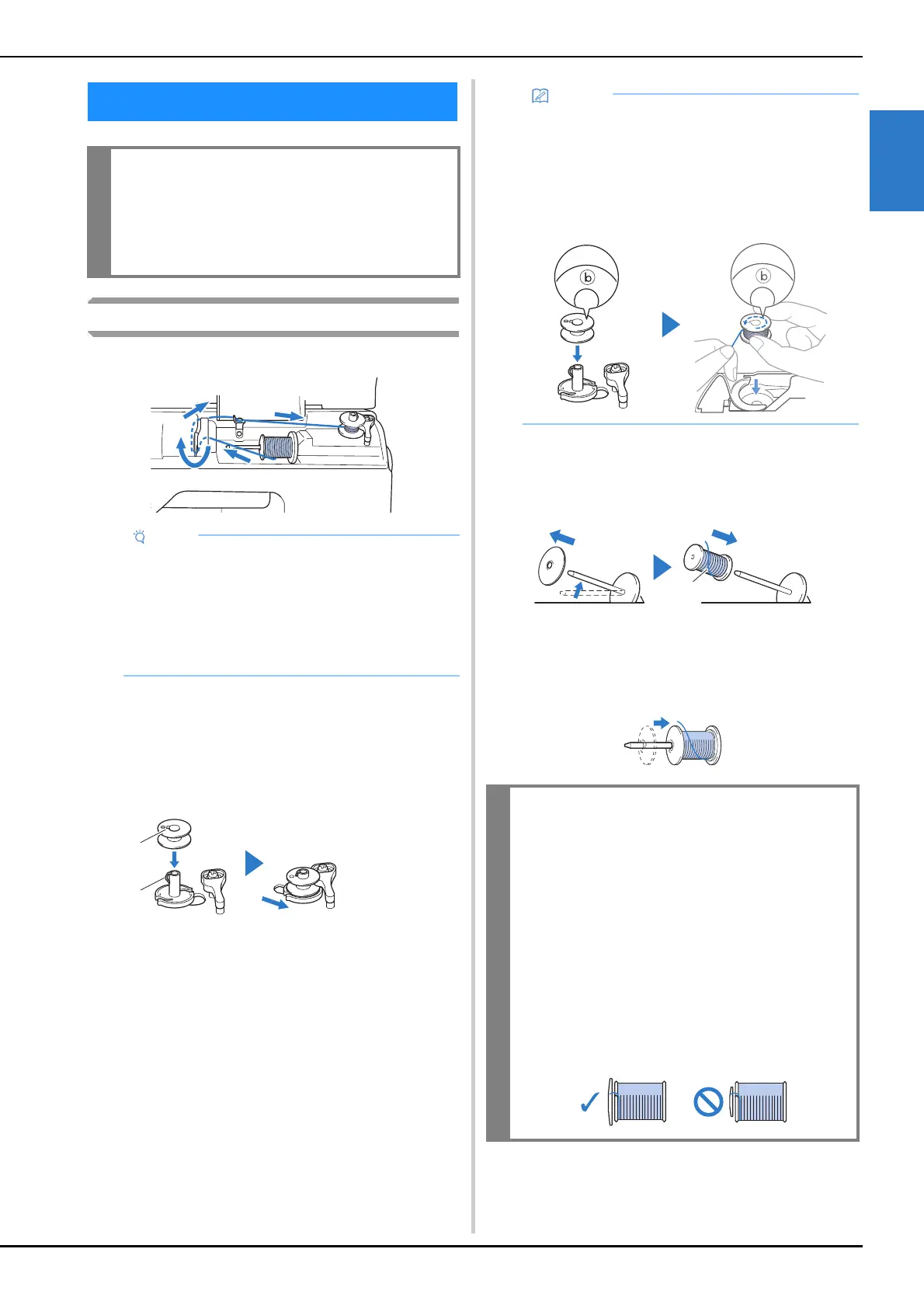 This section describes how to wind thread onto a bobbin.