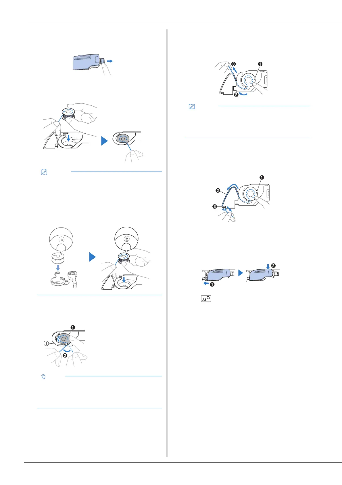 • For the correct winding direction of the bobbin