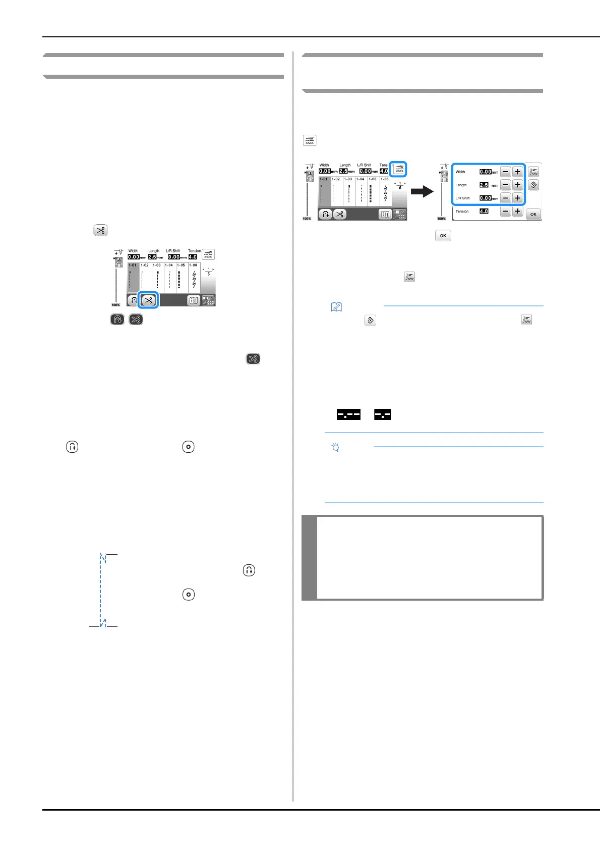 • After adjusting the stitch width or the “L/R Shift”,