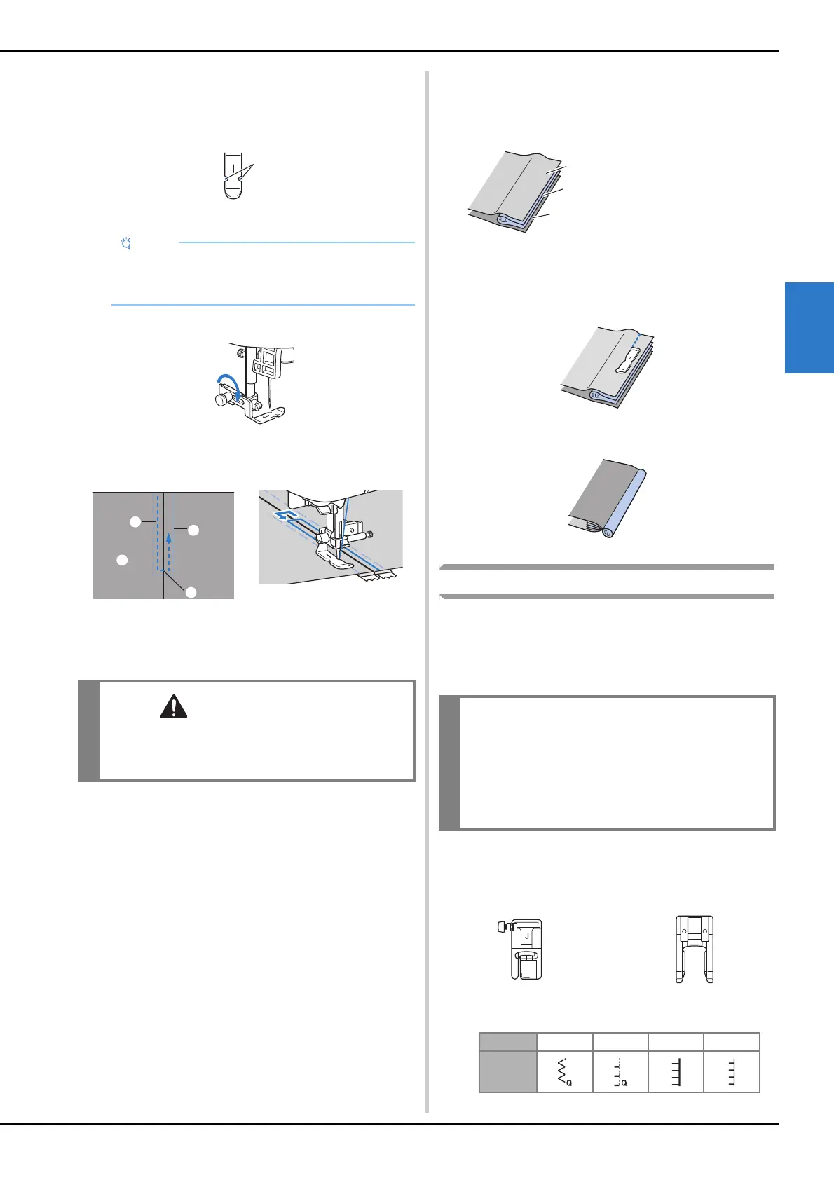 • When sewing, be sure that the needle does not