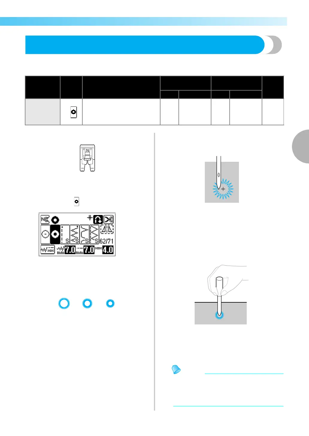 Eyelets, such as those on belts, can be sewn. Three sizes of eyelets are possible: 7 mm, 6 mm and 5 mm