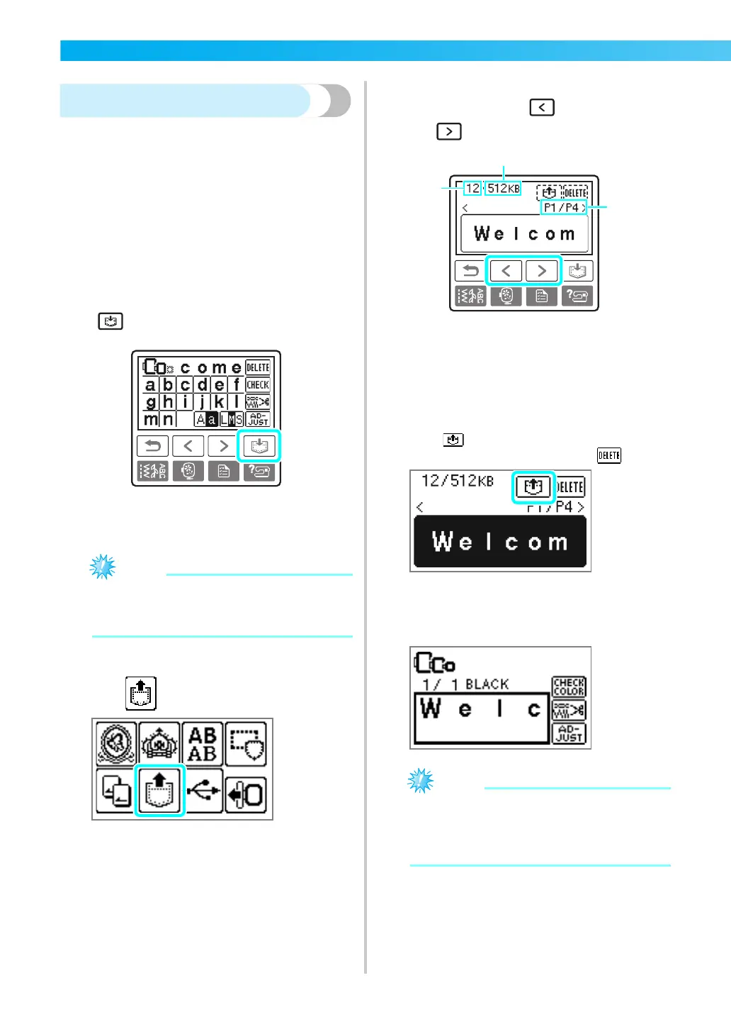 the like. You can save up to 12 patterns or 512 KB of