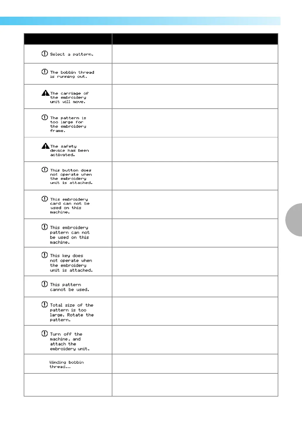 pressed in embroidery mode, but the embroidery unit is not attached.