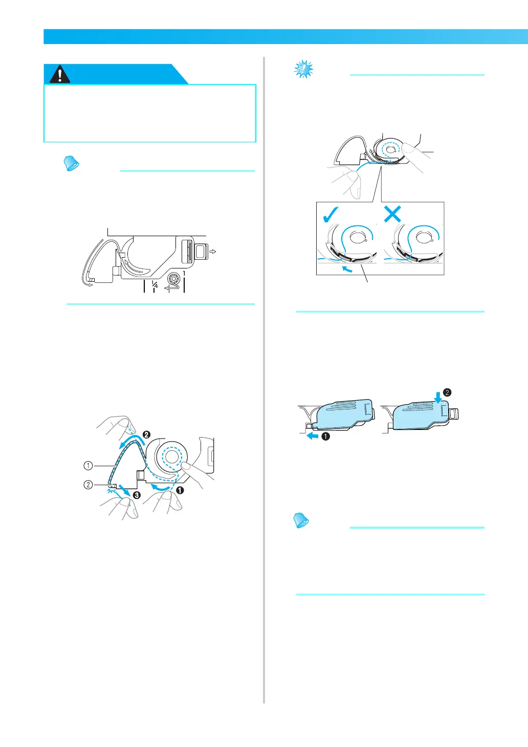 ● Be sure to install the bobbin so that the