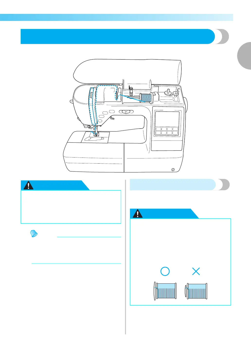 ● When threading the upper thread,