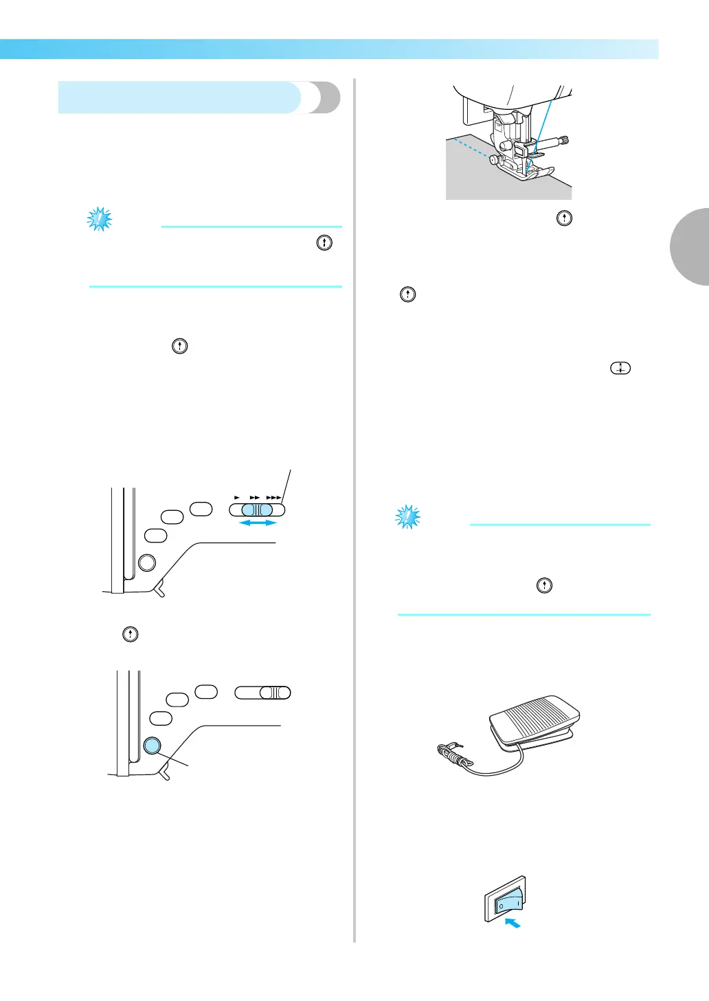 starts, the machine will sew at a slow speed.