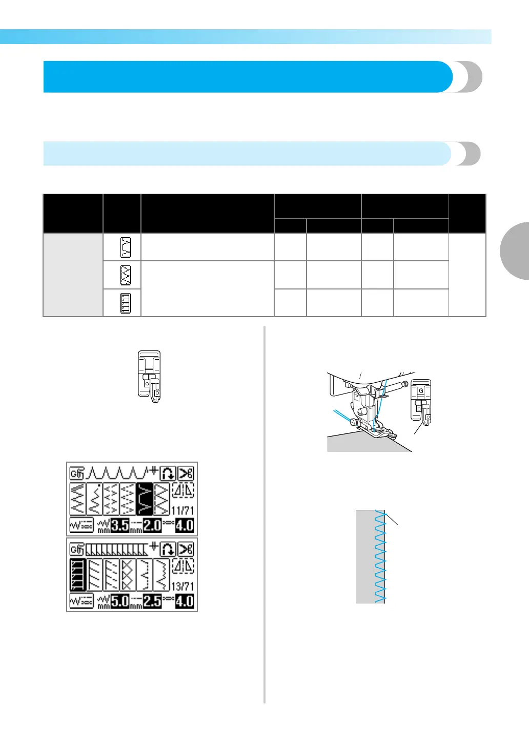 Three stitches can be used to sew overcasting with overcasting foot “G”.