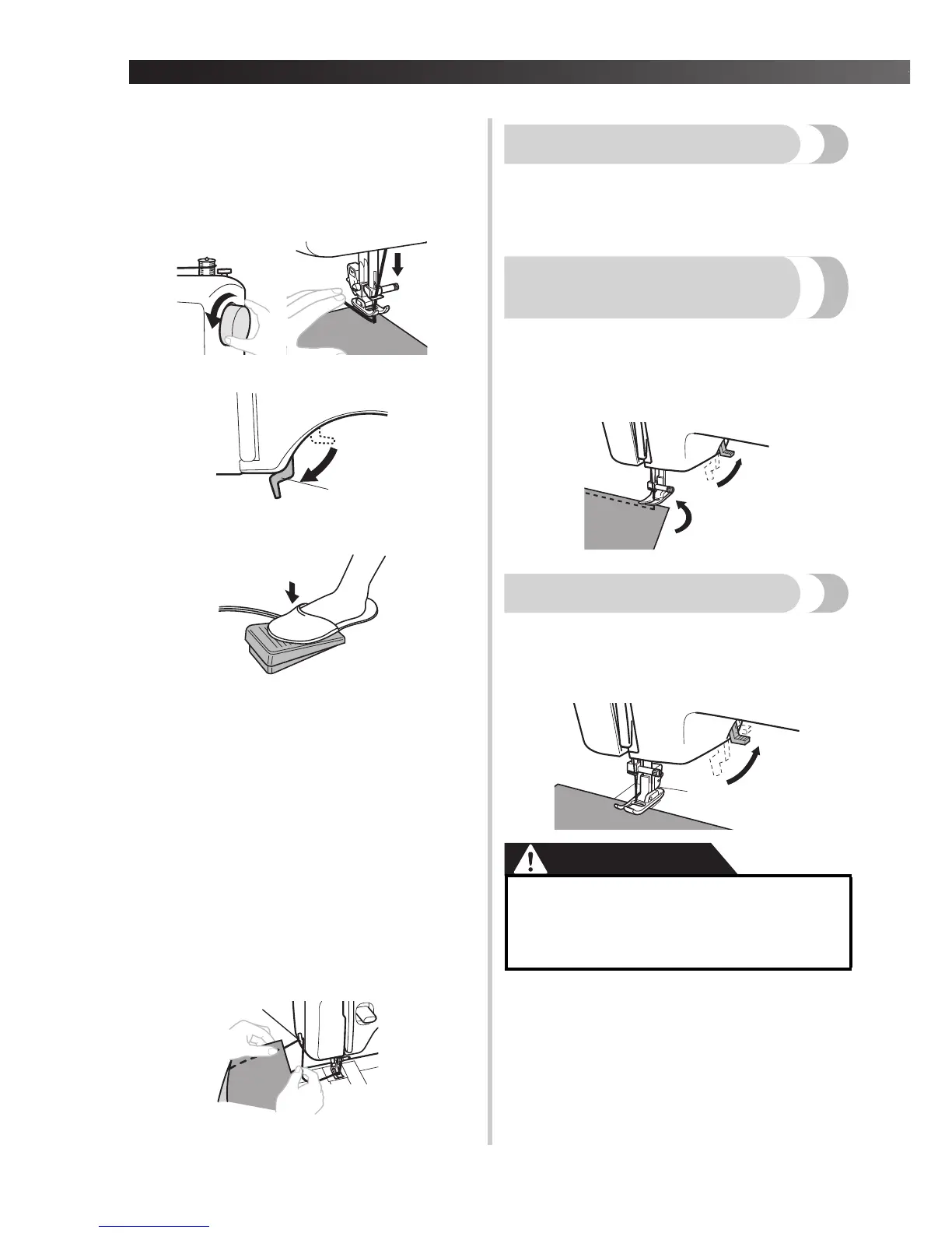 continuación, suba la palanca del pie prensatela.