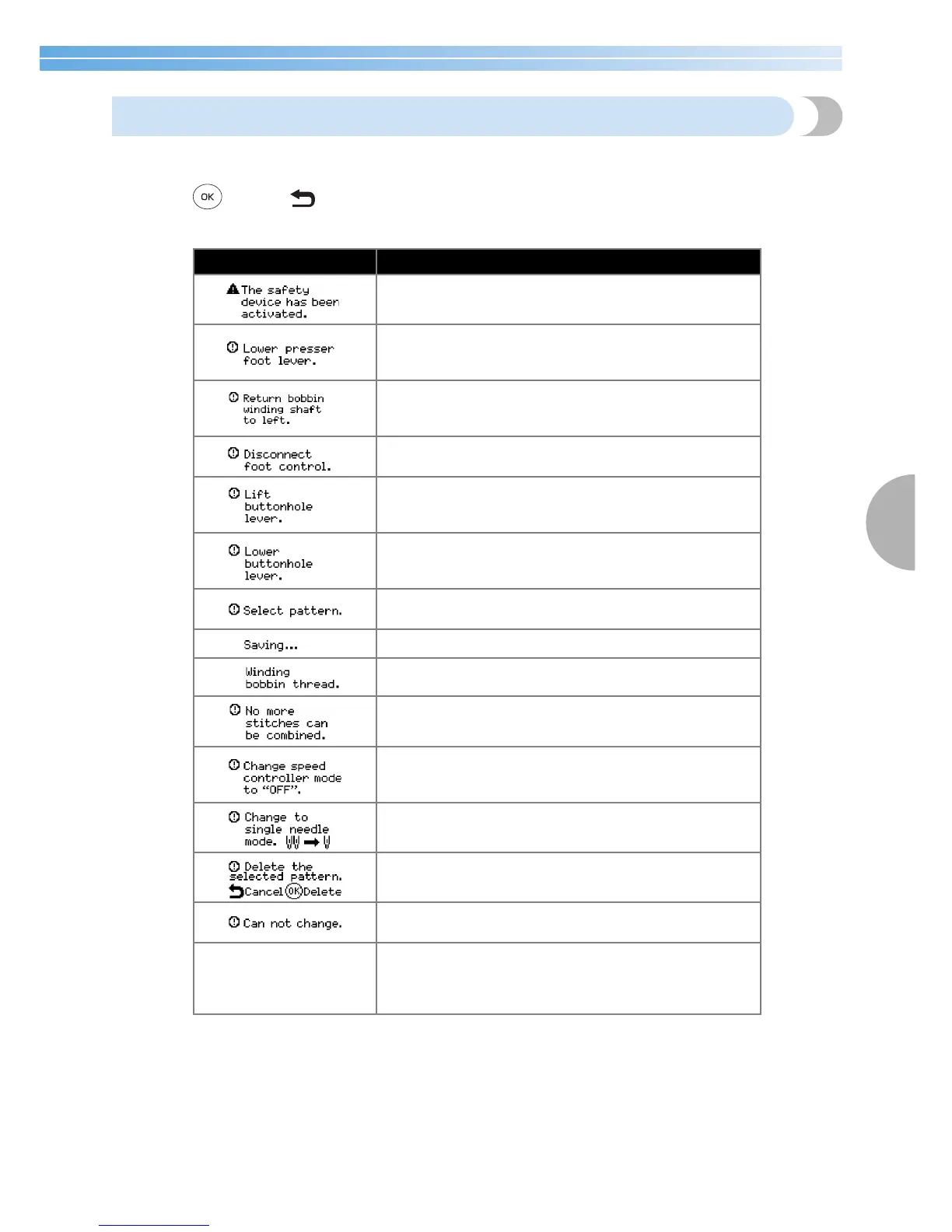 If the start/stop button is pressed before the sewing machine is correctly set up or if an operation is performed