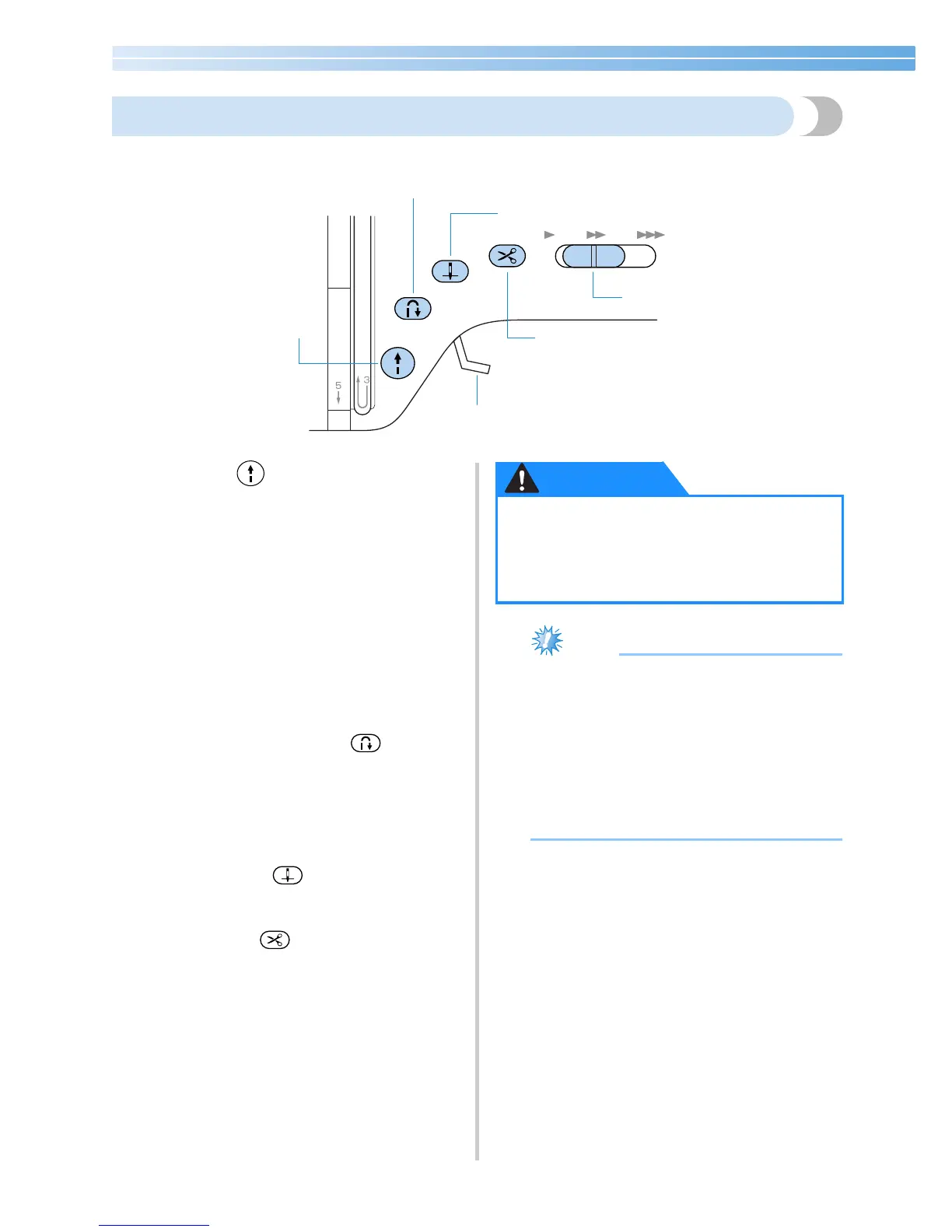 ● Do not press the thread cutter button after