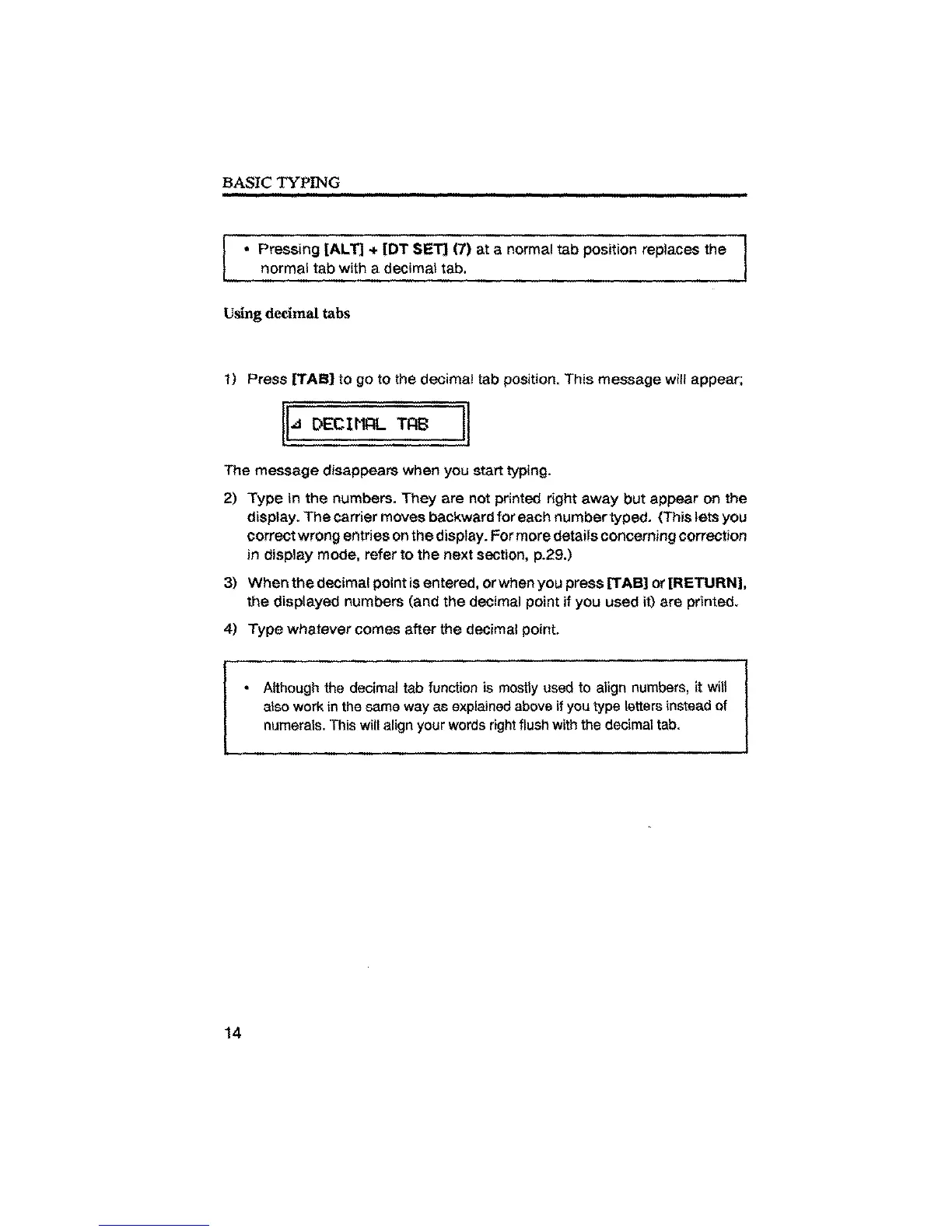 1) Press [TAB] to go to the decimaJ tab position. This message will appear;
