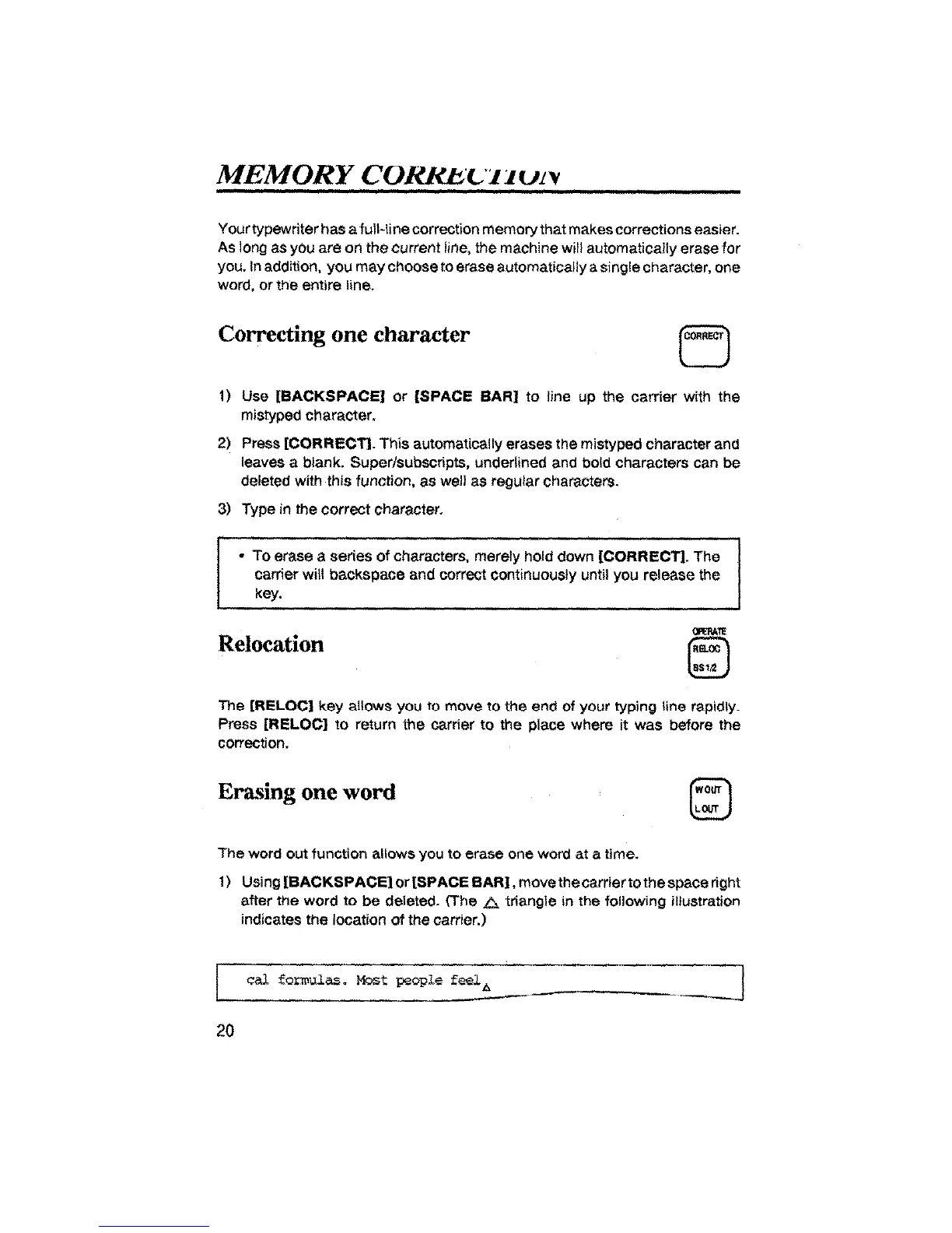 Your typewriter has a full~line correction memory that makes corrections easier.