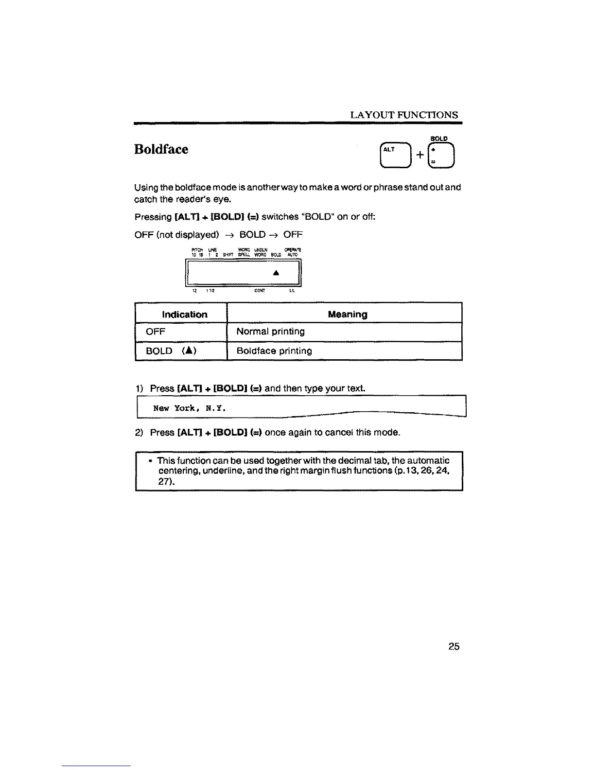 Pressing [ALT] ._-[BOLD[ (=) switches "BOLD" on or off: