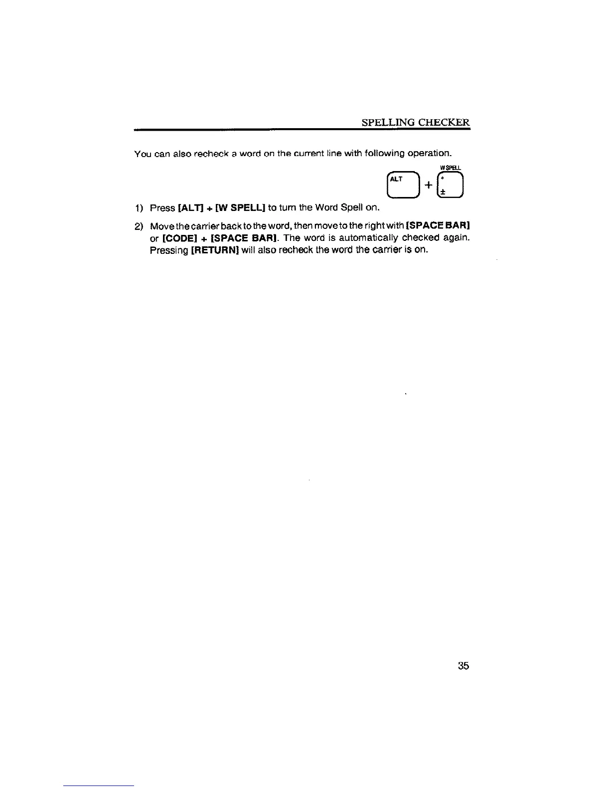 1) Press [ALT] ÷ [W SPELLI to turn the Word Spell on.