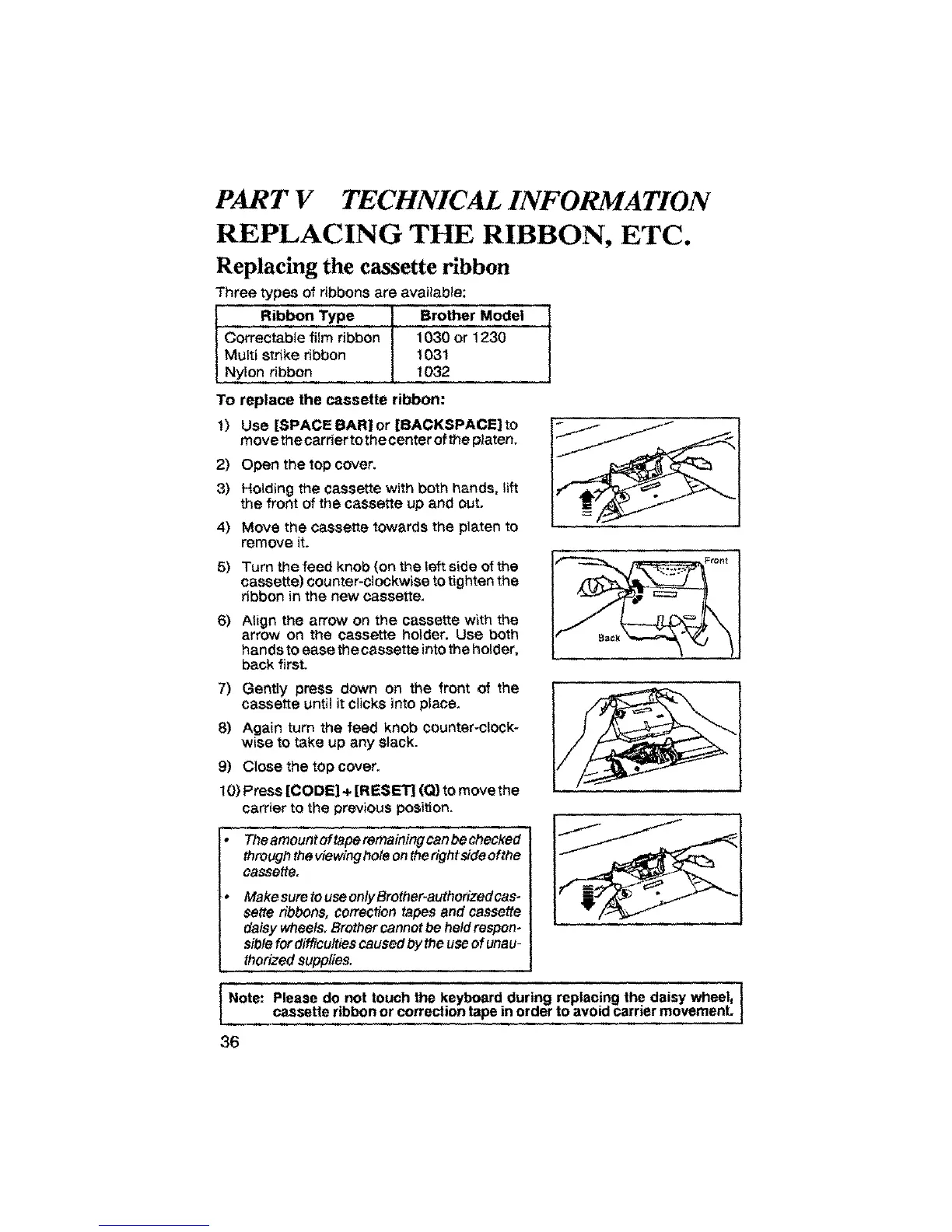 REPLACING THE RIBBON, ETC.
