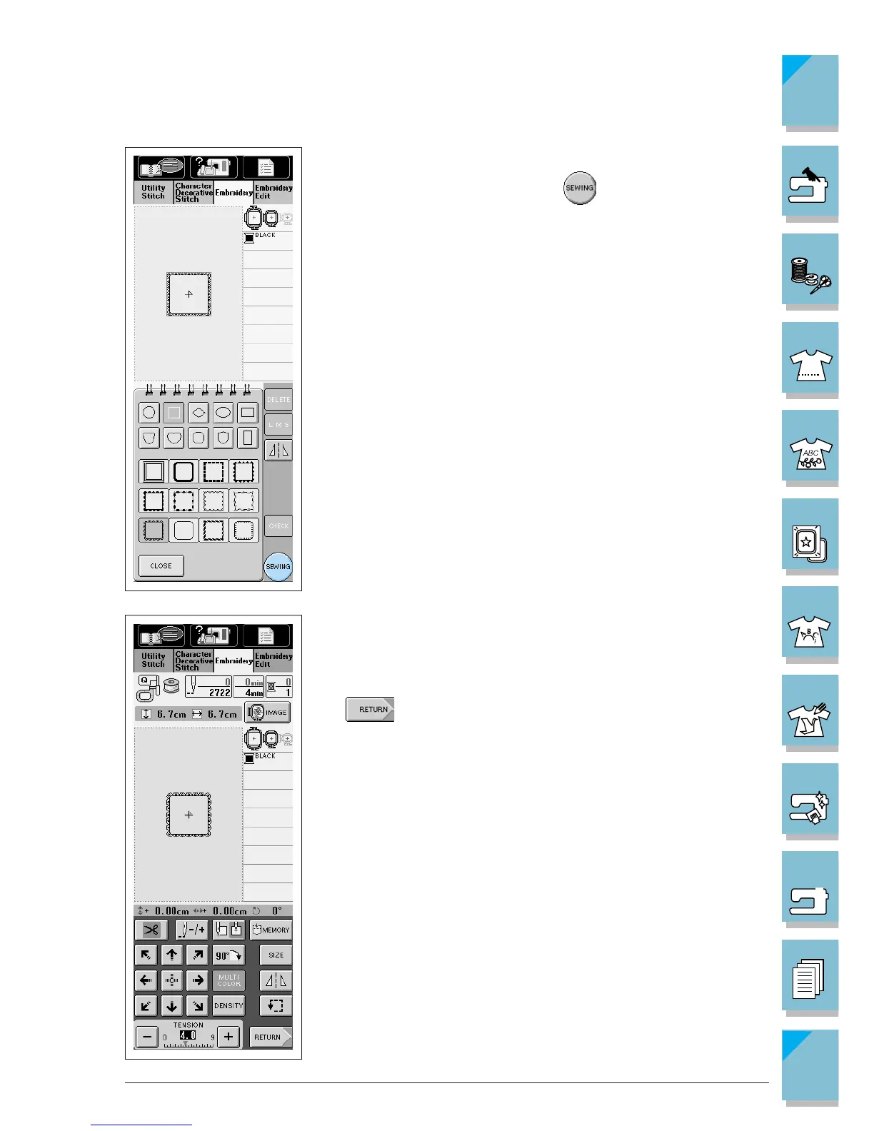 * To go to the next step, see page 5-19, “Viewing the Sewing