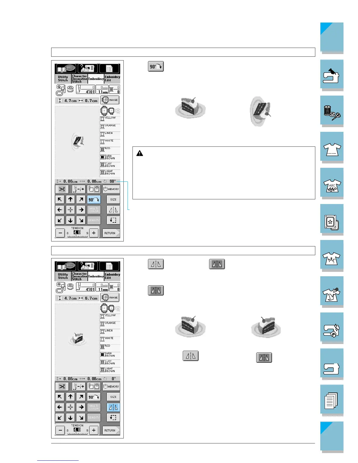 Press to rotate the pattern 90 deg.