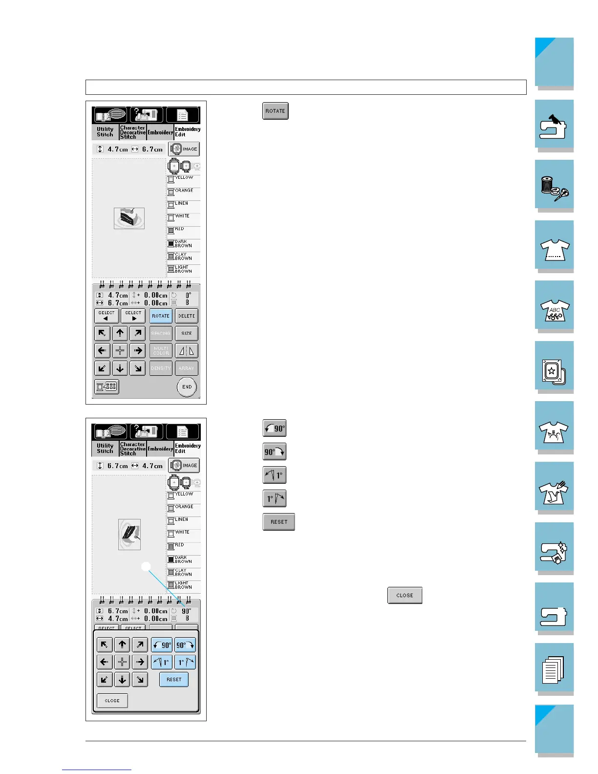 2. Press to rotate the pattern 90 deg. to the left.