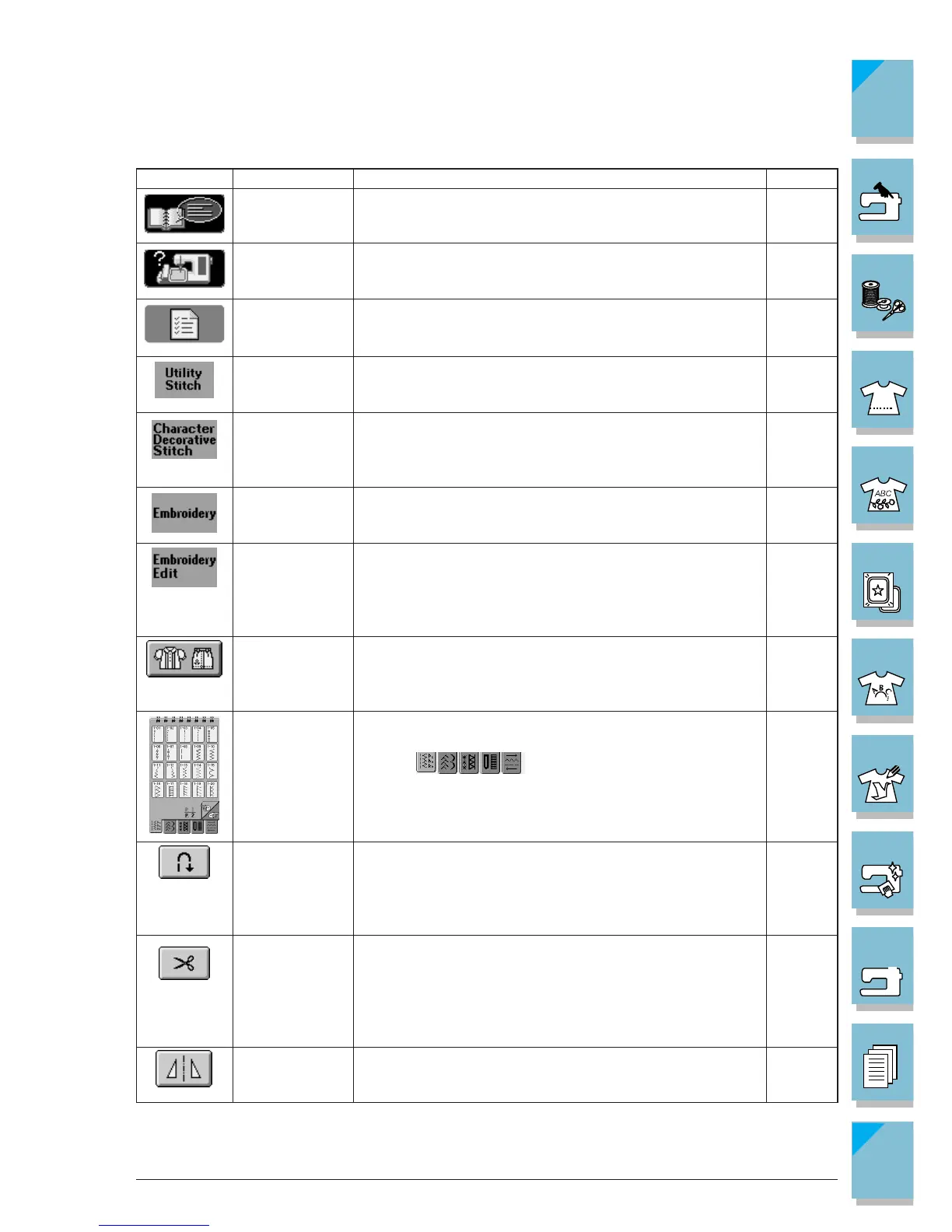 the stitch pattern. This key is very useful for beginners.