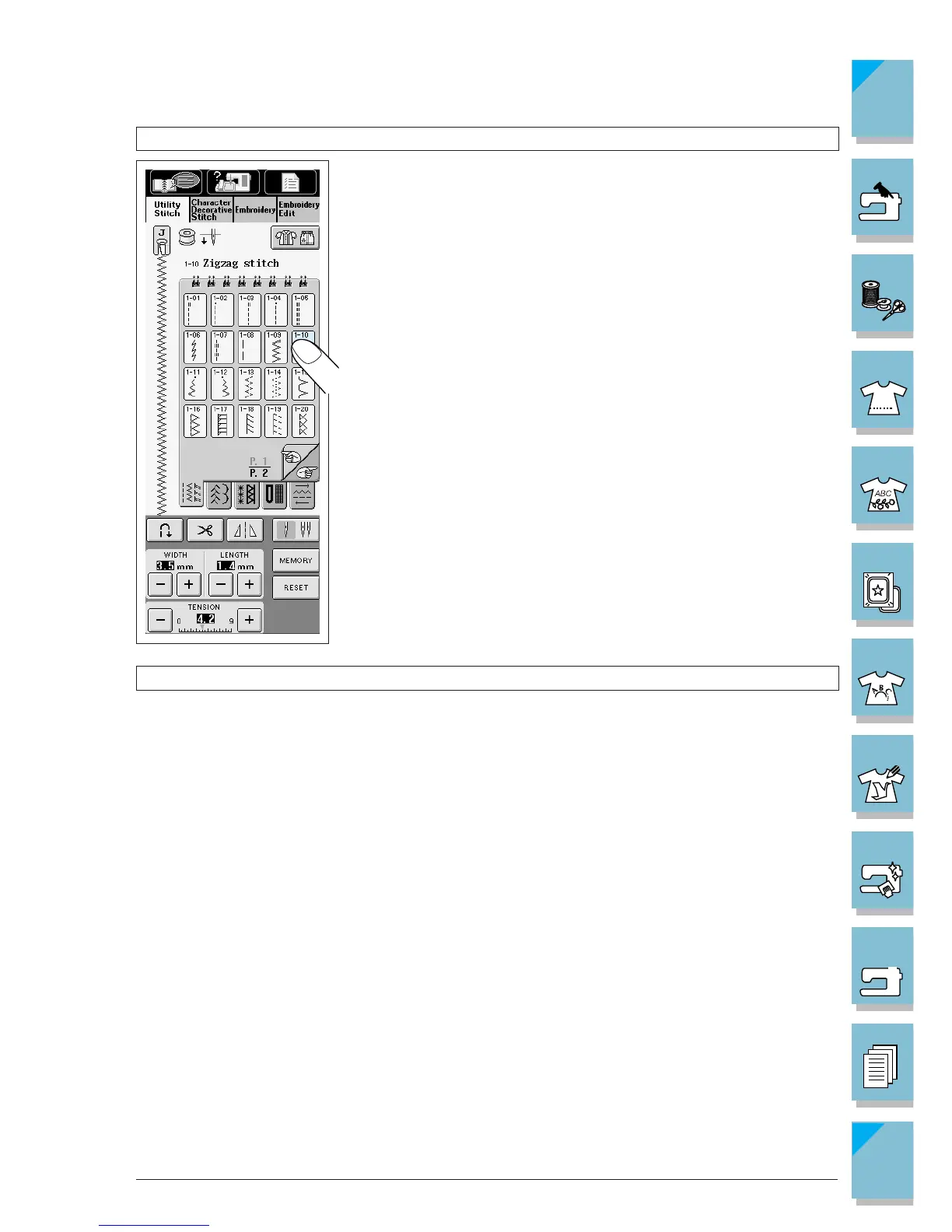Press a key with your finger to select the stitch pattern, or to select a