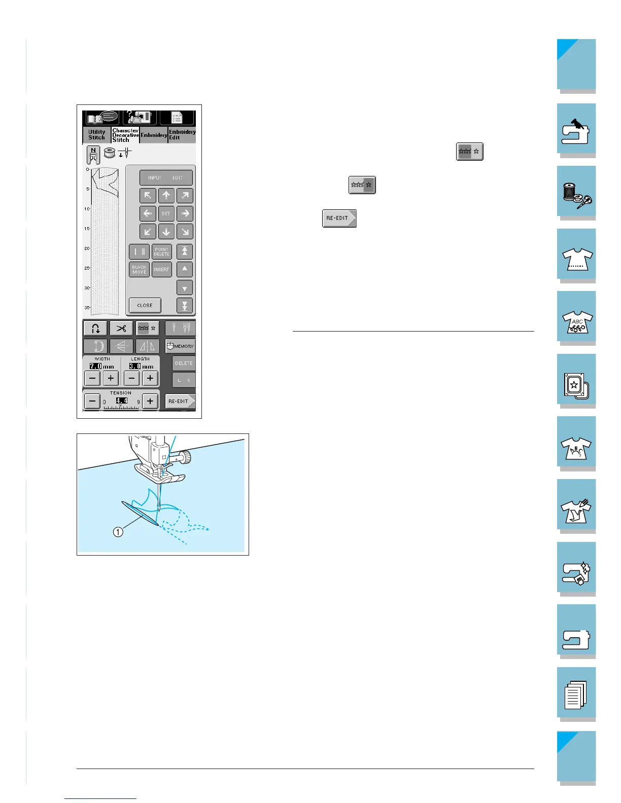 * Press this key so that it appears as to sew the