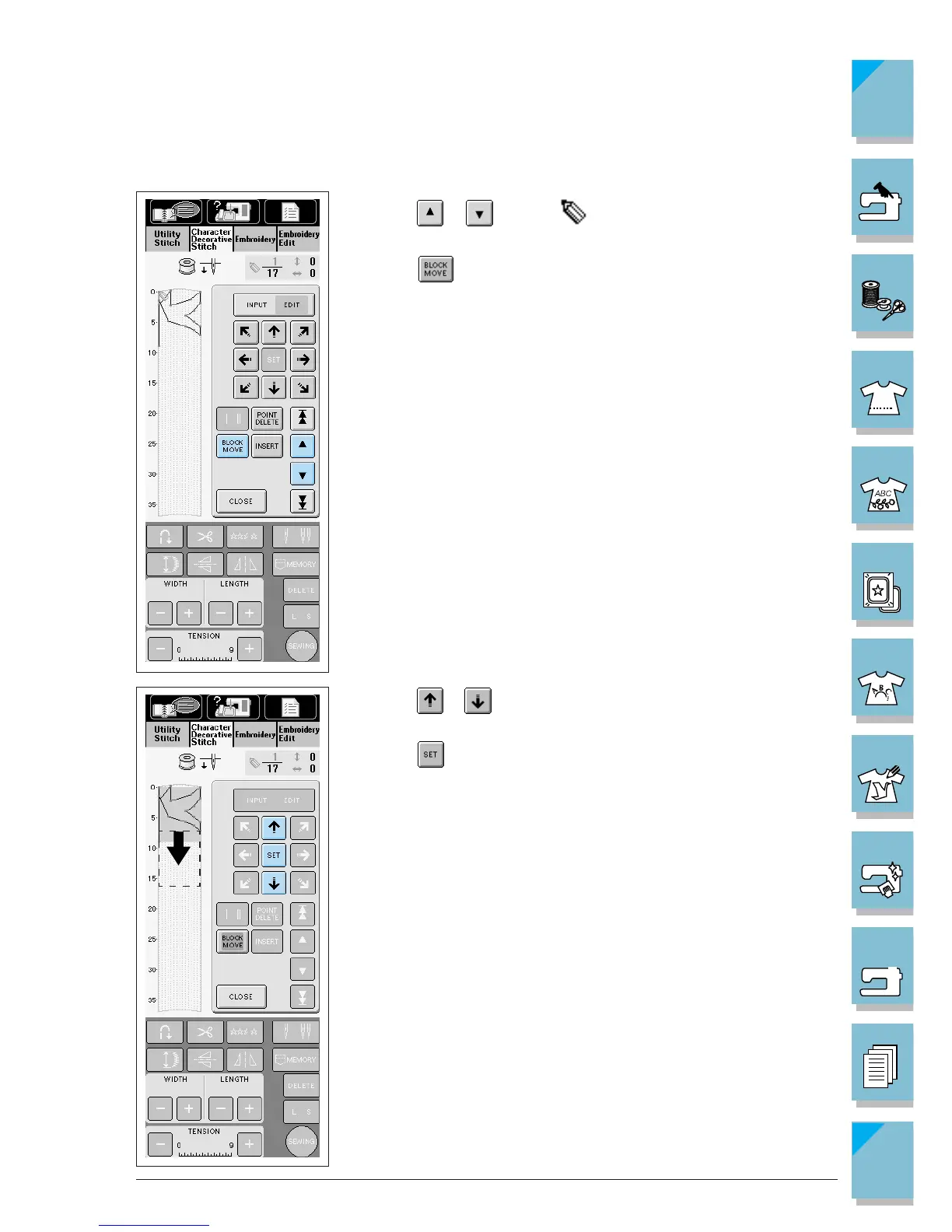 1. Press or to move