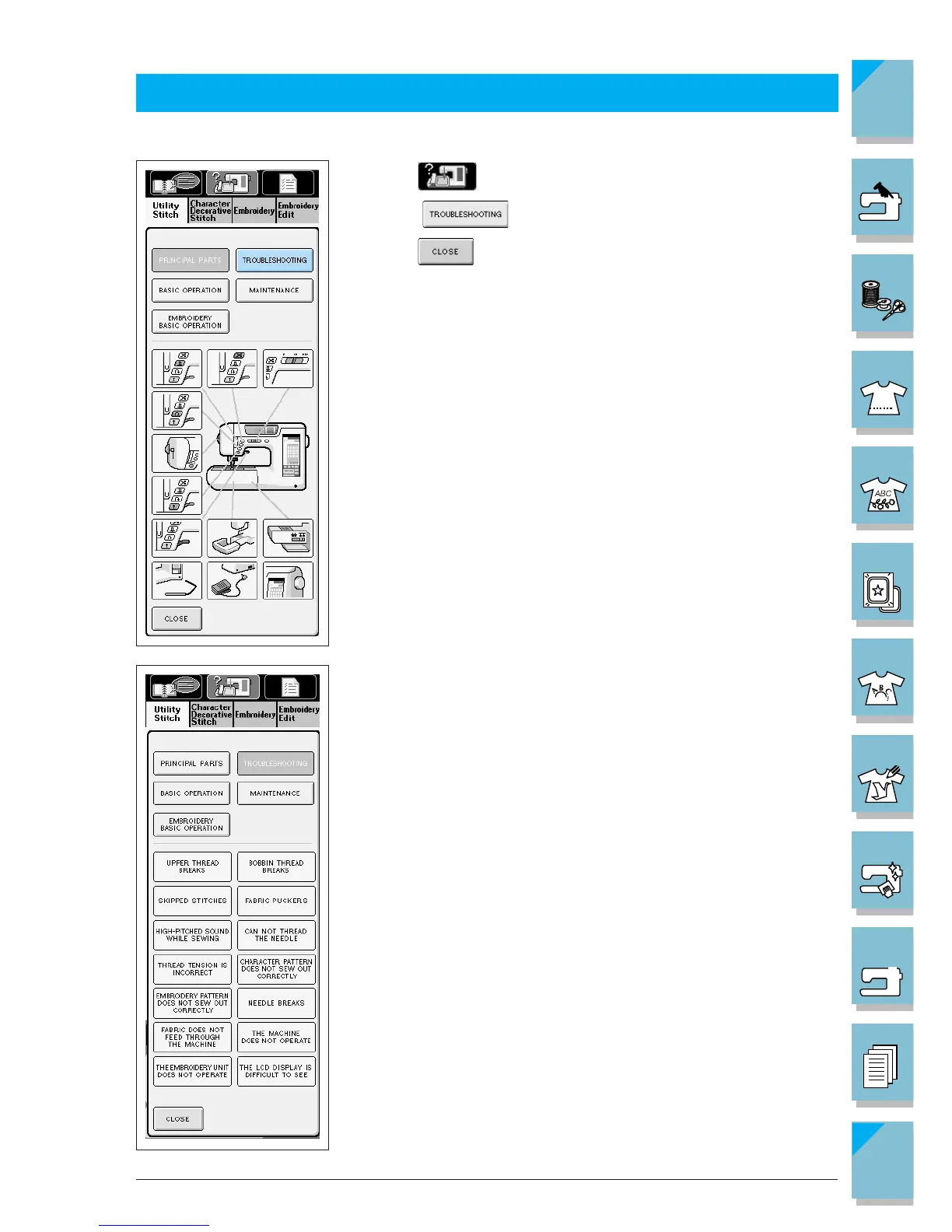 Use the troubleshooting key for advice about minor sewing problems during sewing.