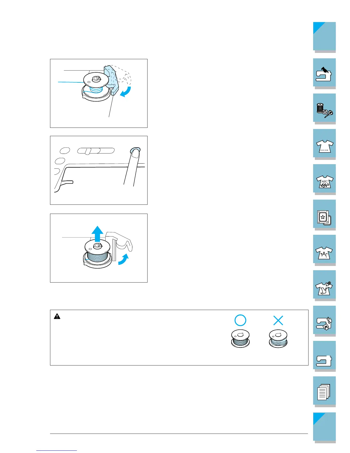 When removing the bobbin, do not pull on the bobbin