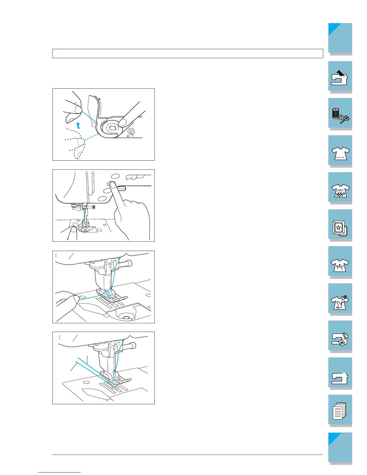1. Guide the bobbin thread through the groove, follow-
