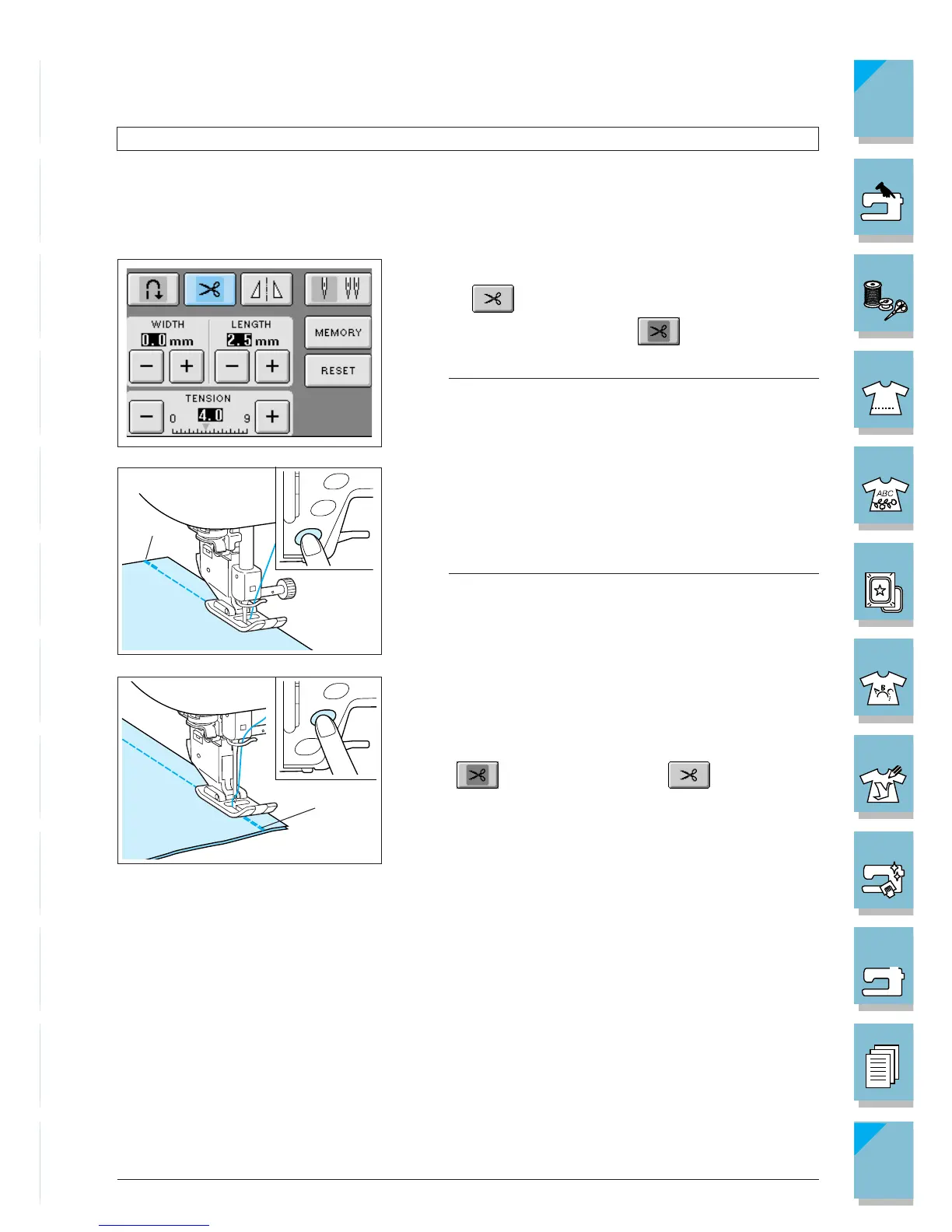 2. Press to set the automatic thread cutting func-