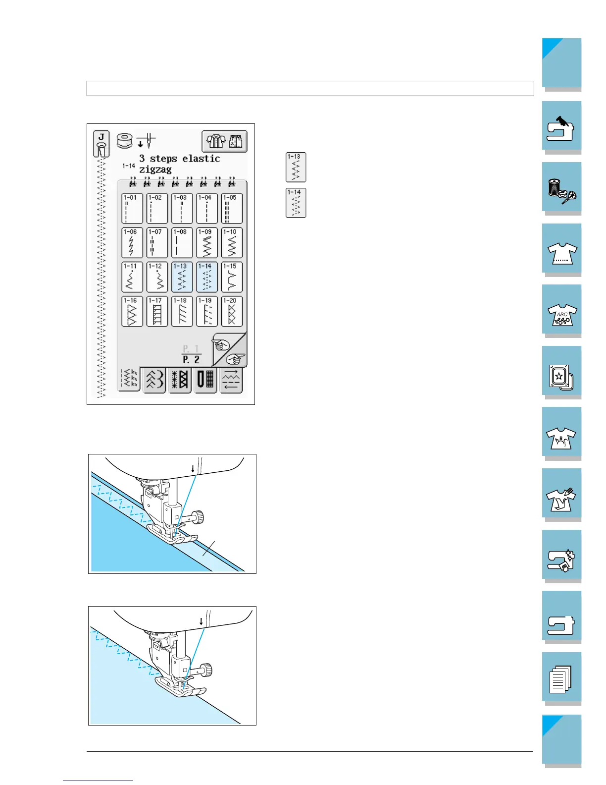 Use elastic zigzag stitches for tape attaching, overcasting, darning, or a wide variety of other uses.