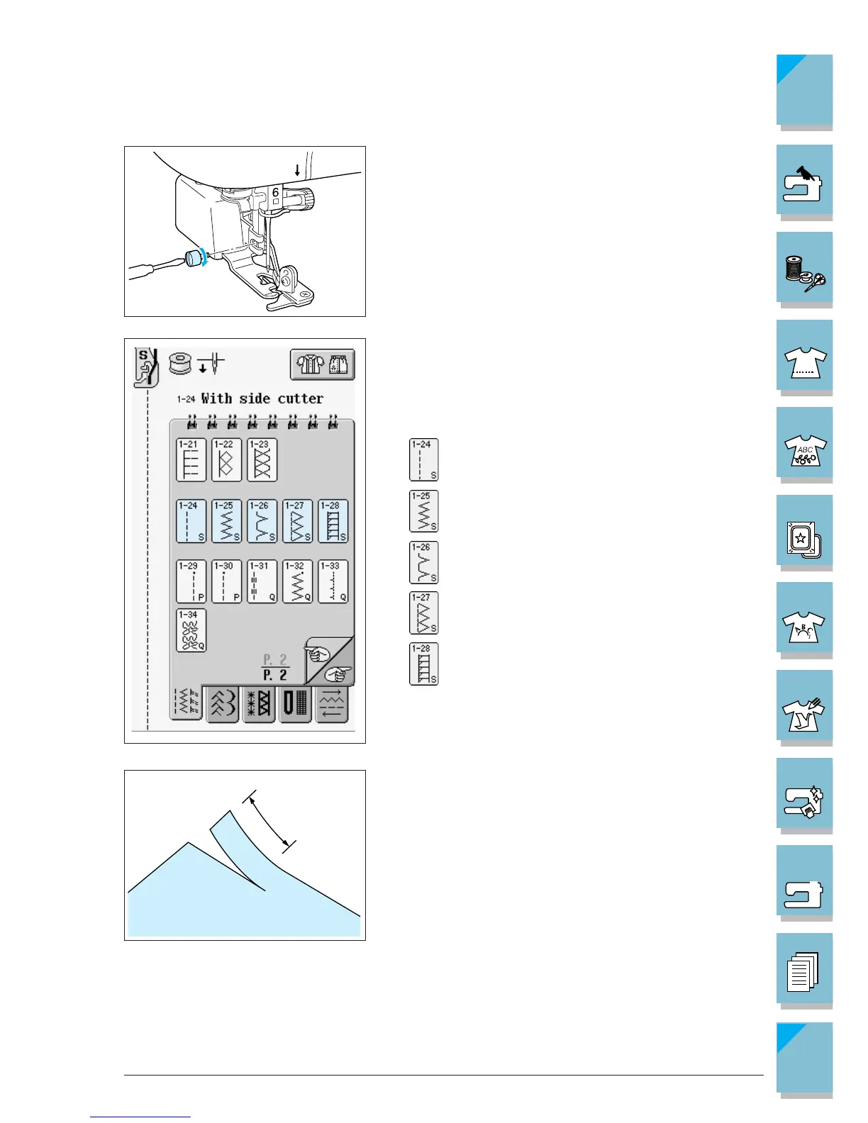 indicated stitch pattern can be sewn with the side cut-
