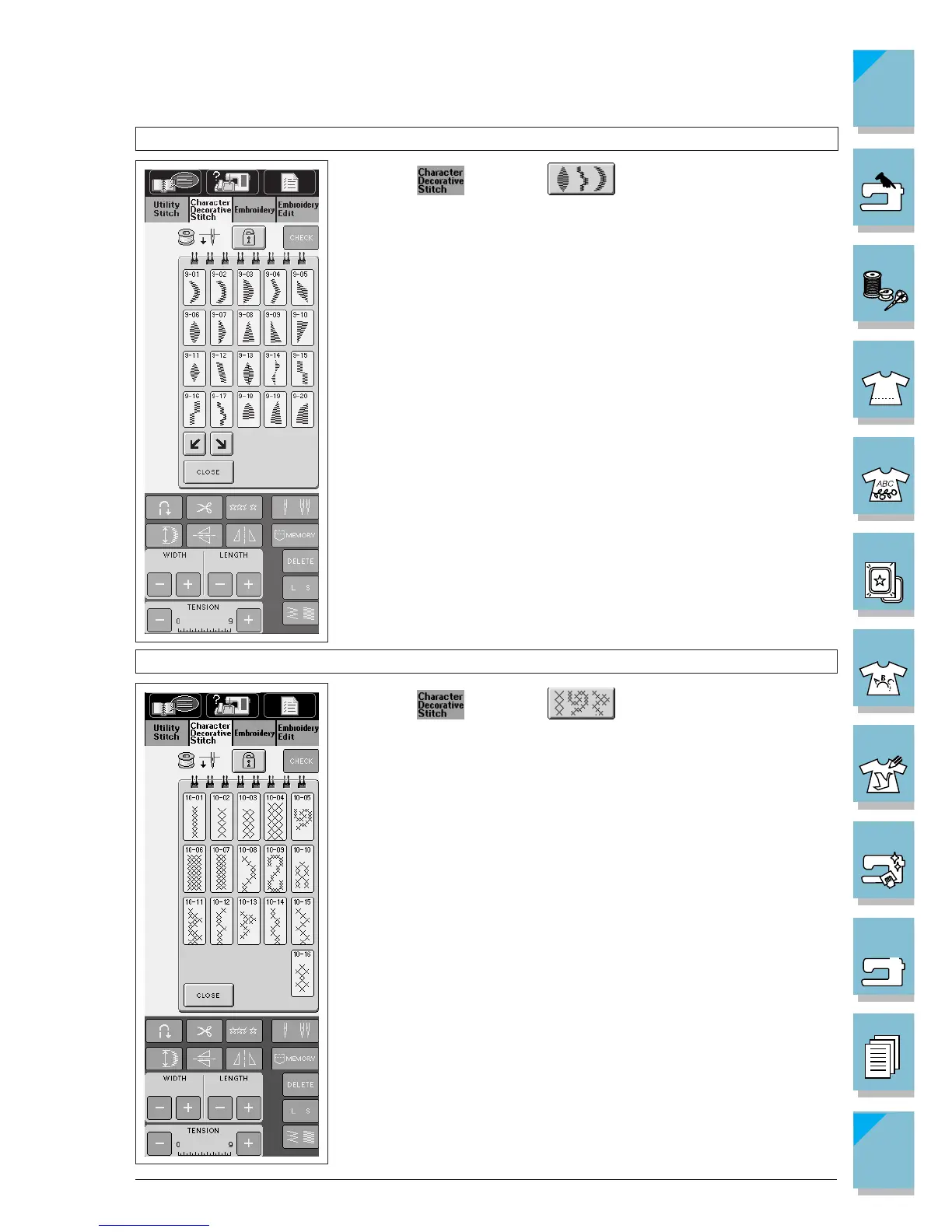 2. The stitch pattern selection method is the same as for decorative