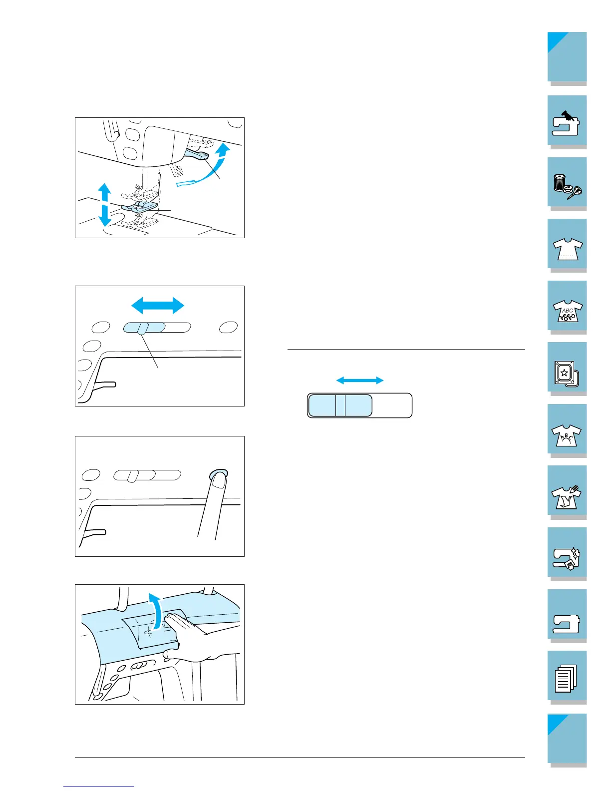 apply pressure to the fabric. If the presser foot is raised to