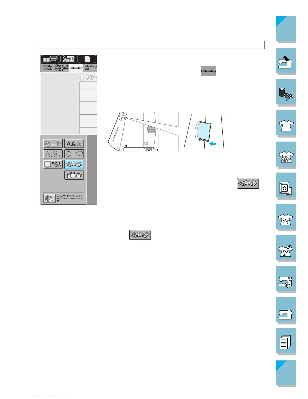 • Only insert or remove the embroidery card when