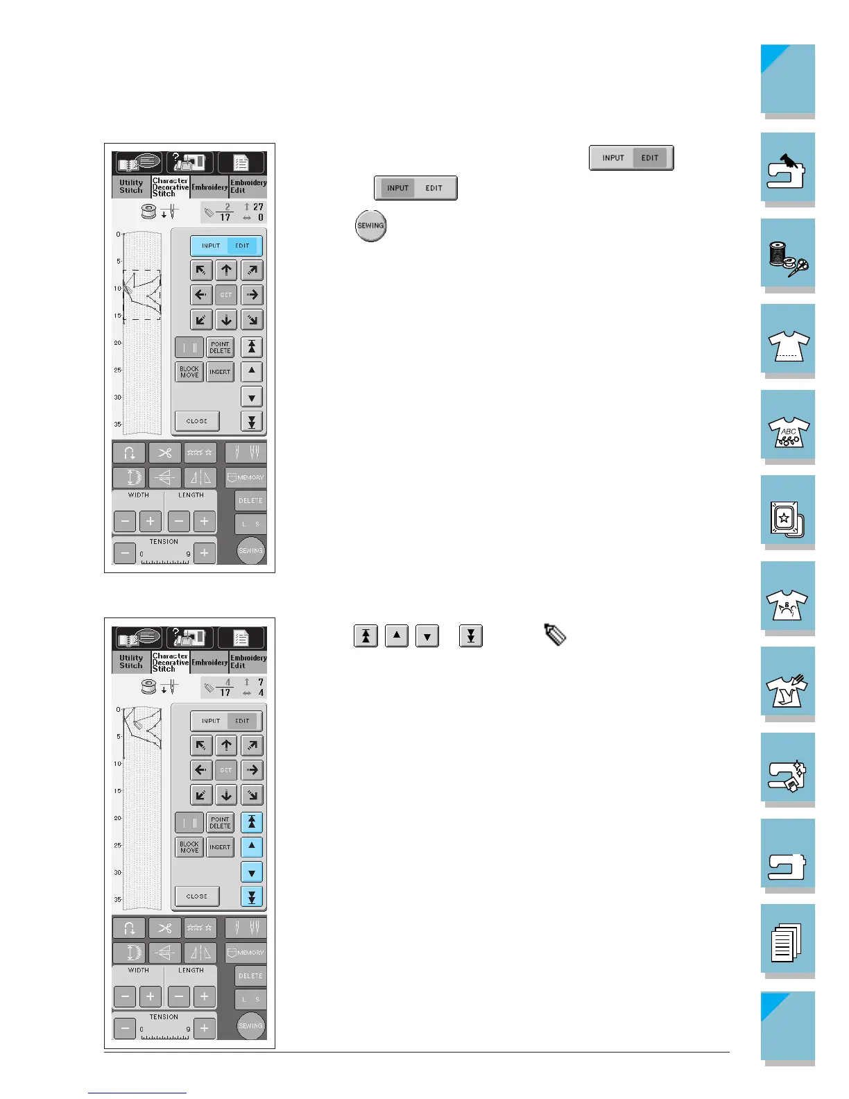 to go to the sewing screen (see page 4-9 for instruc-
