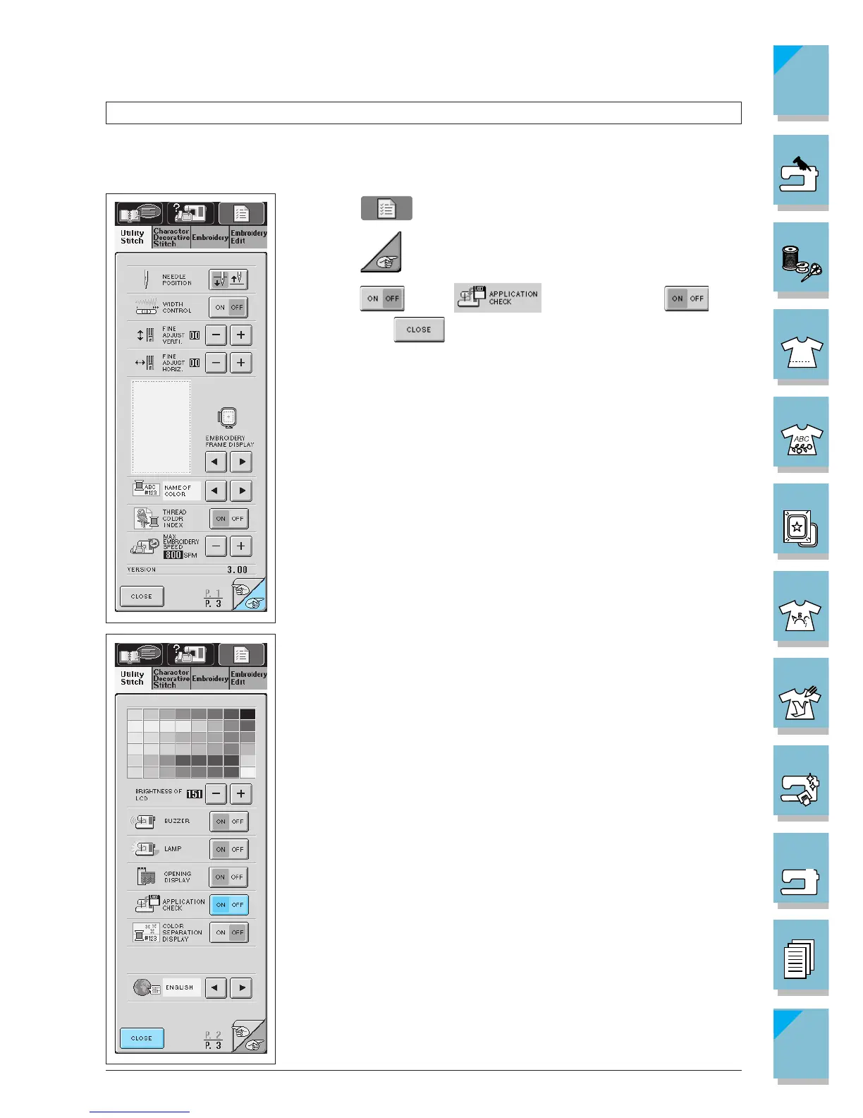 allows you to select the sewing machine or the application ap-