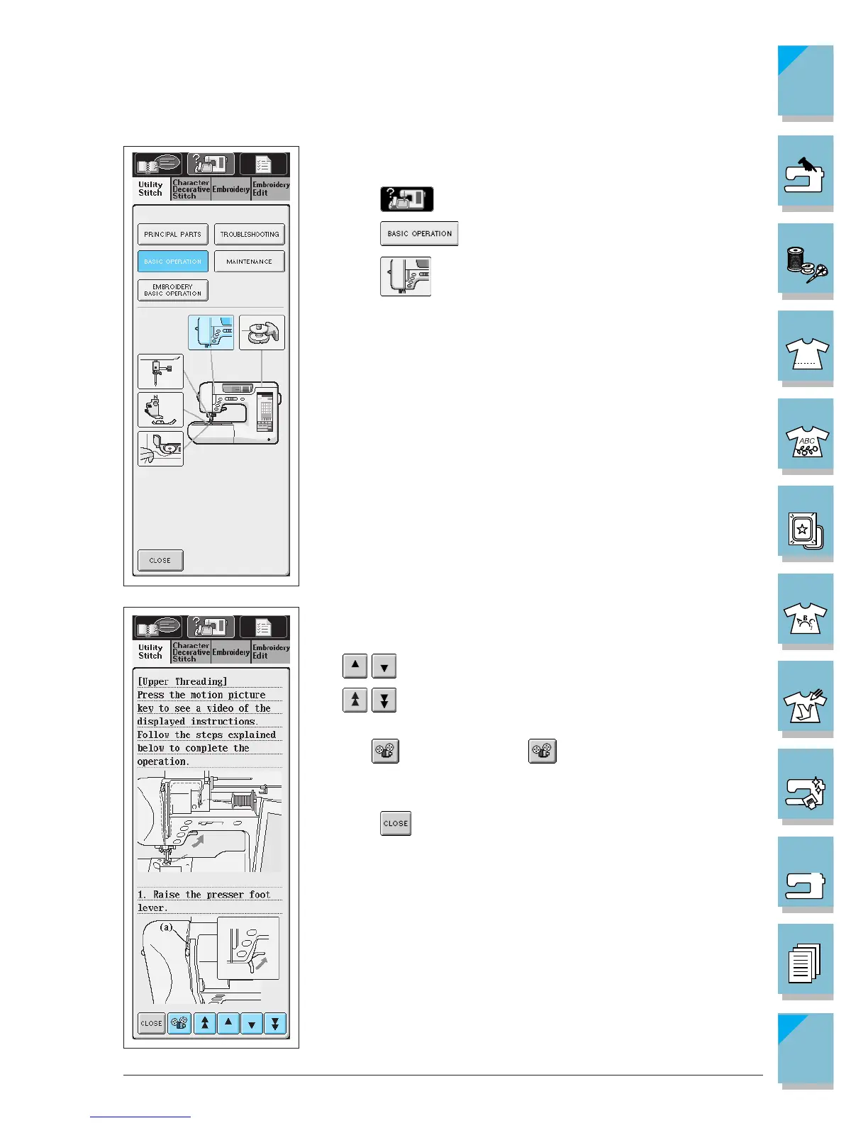 4. This screen shows instructions for threading the machine.